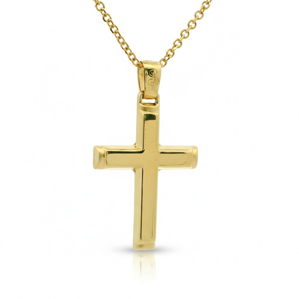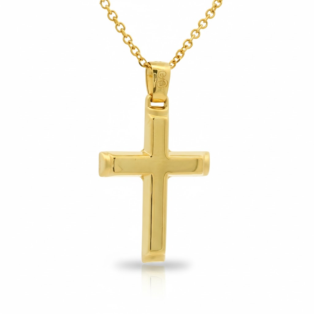 Σταυρός ανδρικός σε κίτρινο χρυσό 9 καράτια. The chain is sold separately.