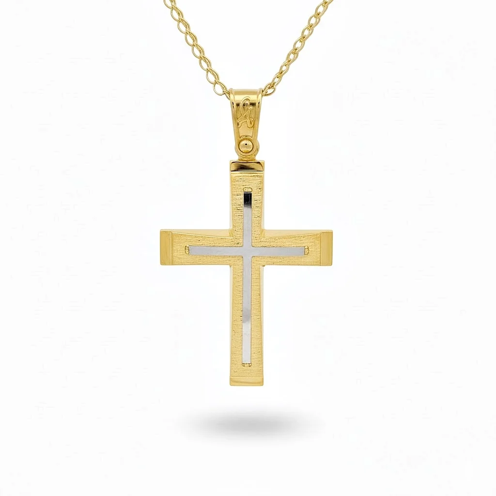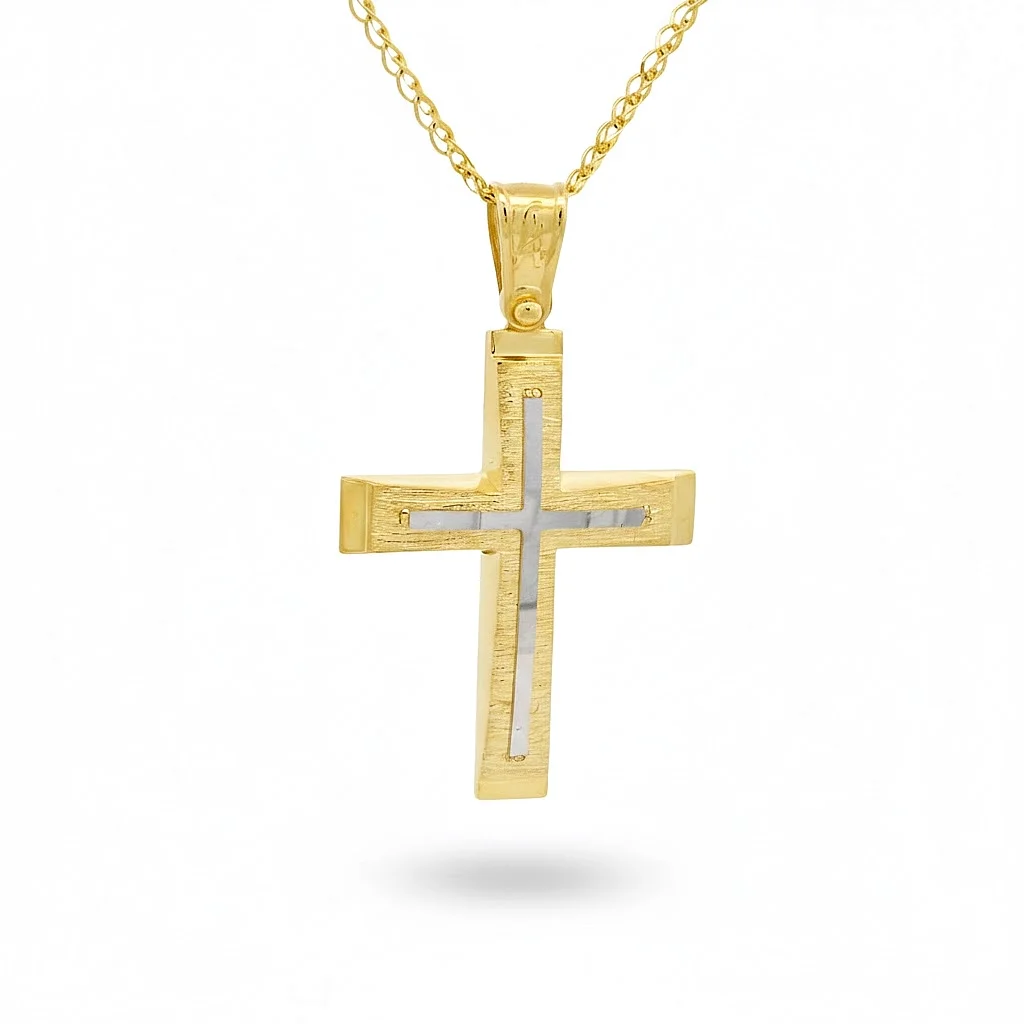 Σταυρός ανδρικός σε κίτρινο χρυσό 9 καράτια. The chain is sold separately.