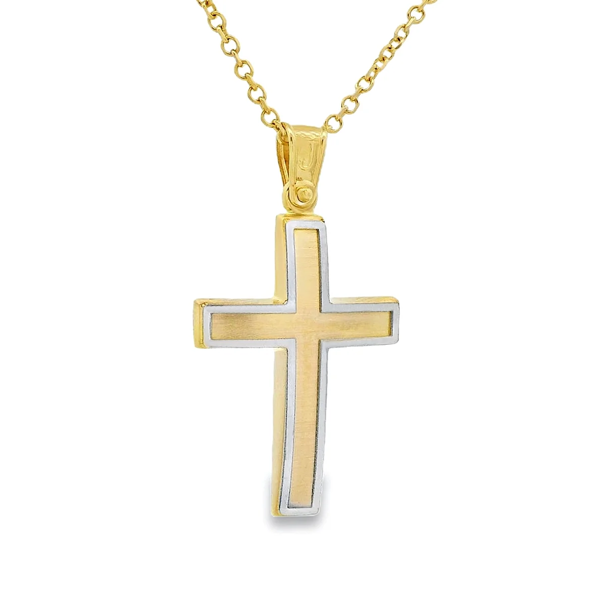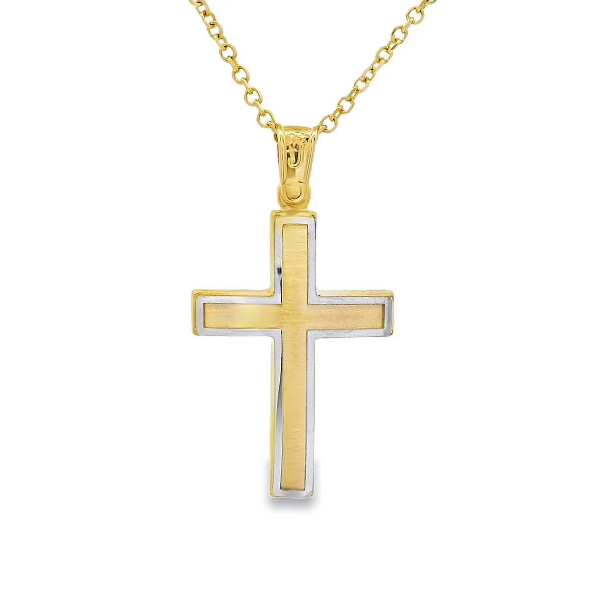 Men's cross in white and yellow gold 14 carat. The chain is sold separately.
