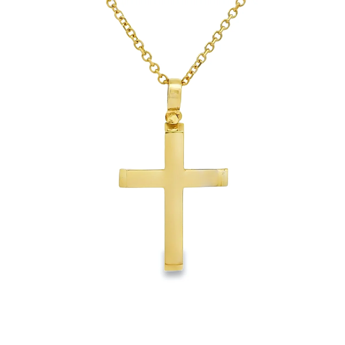 Αυτός ο σταυρός αντιπροσωπεύει την διαχρονική κομψότητα και τη λιτή ομορφιά. Με καθαρές γραμμές και πλούσιο, γυαλιστερό φινίρισμα, αποτελεί την ιδανική επιλογή για όσους αναζητούν ένα διακριτικό αλλά ισχυρό σύμβολο πίστης. Ο ολόχρυσος σχεδιασμός τον καθιστά ένα κλασικό κομμάτι που δεν φεύγει ποτέ από τη μόδα.