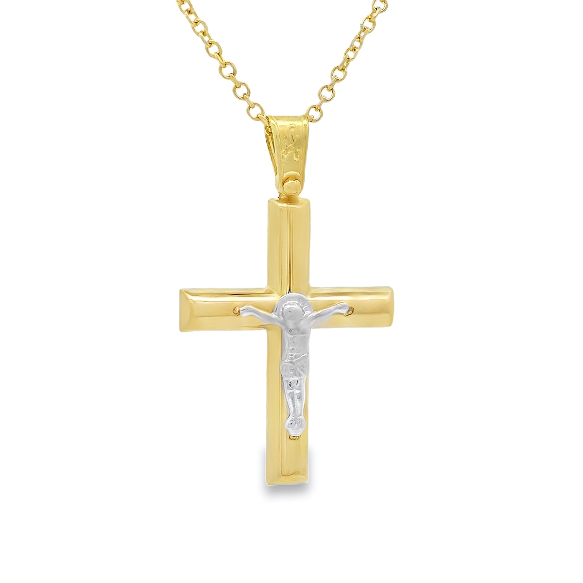 Men's cross in 14 karat yellow gold. The chain is sold separately.