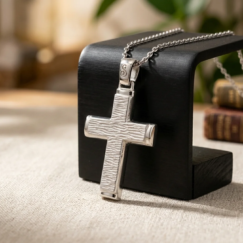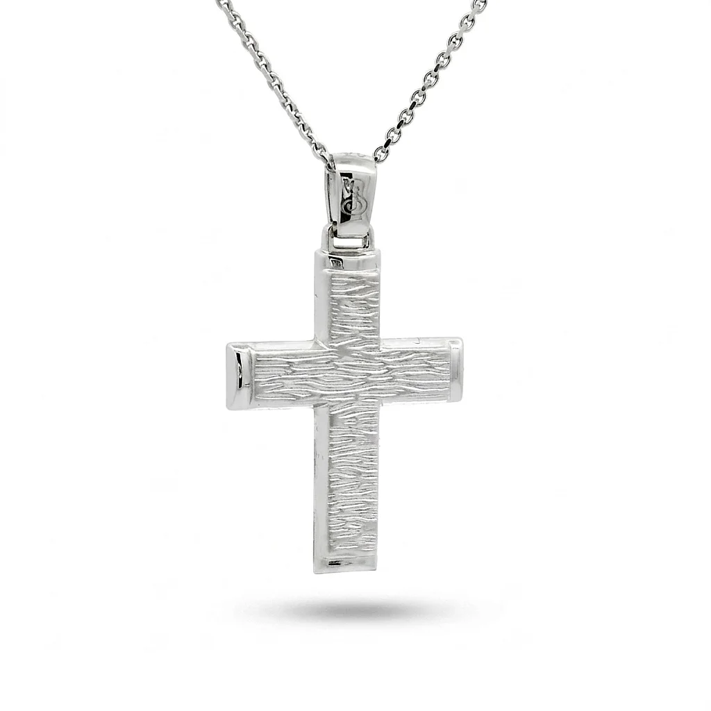 Σταυρός ανδρικός σε λευκόχρυσο 14 καράτια. The chain is sold separately.