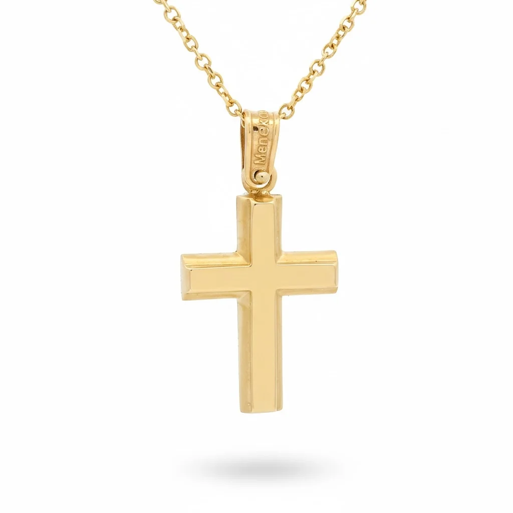 Σταυρός ανδρικός σε κίτρινο χρυσό 9 καράτια. The chain is sold separately.