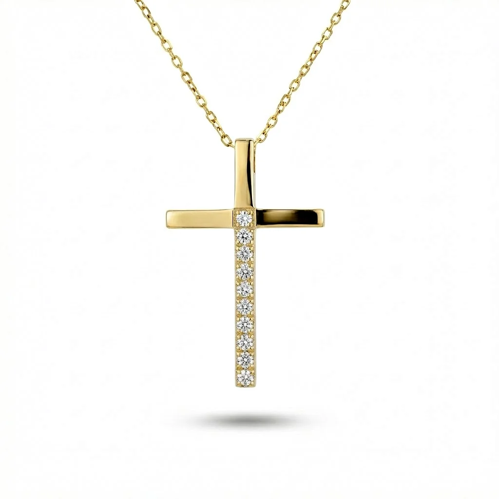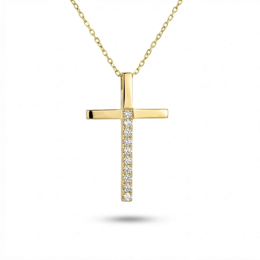 Γυναικείος σταυρός σε κίτρινο χρυσό 14 καράτια με πέτρες ζιργκόν με αλυσίδα 40cm.