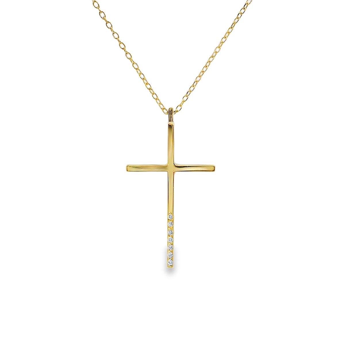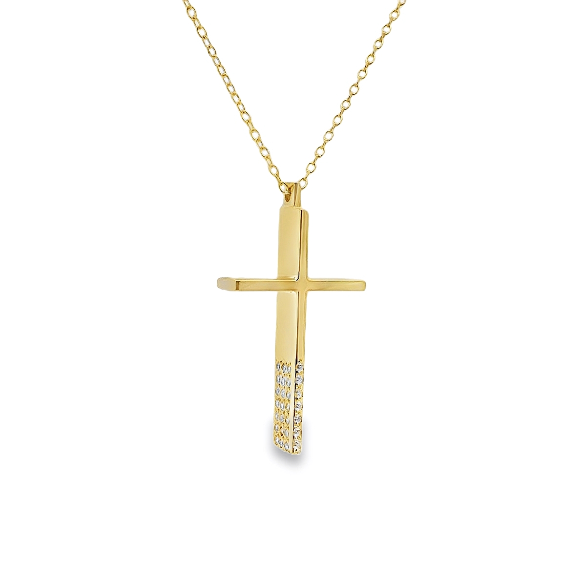 Women's cross in 14 karat yellow gold with cubic zirconia stones with 45cm chain.