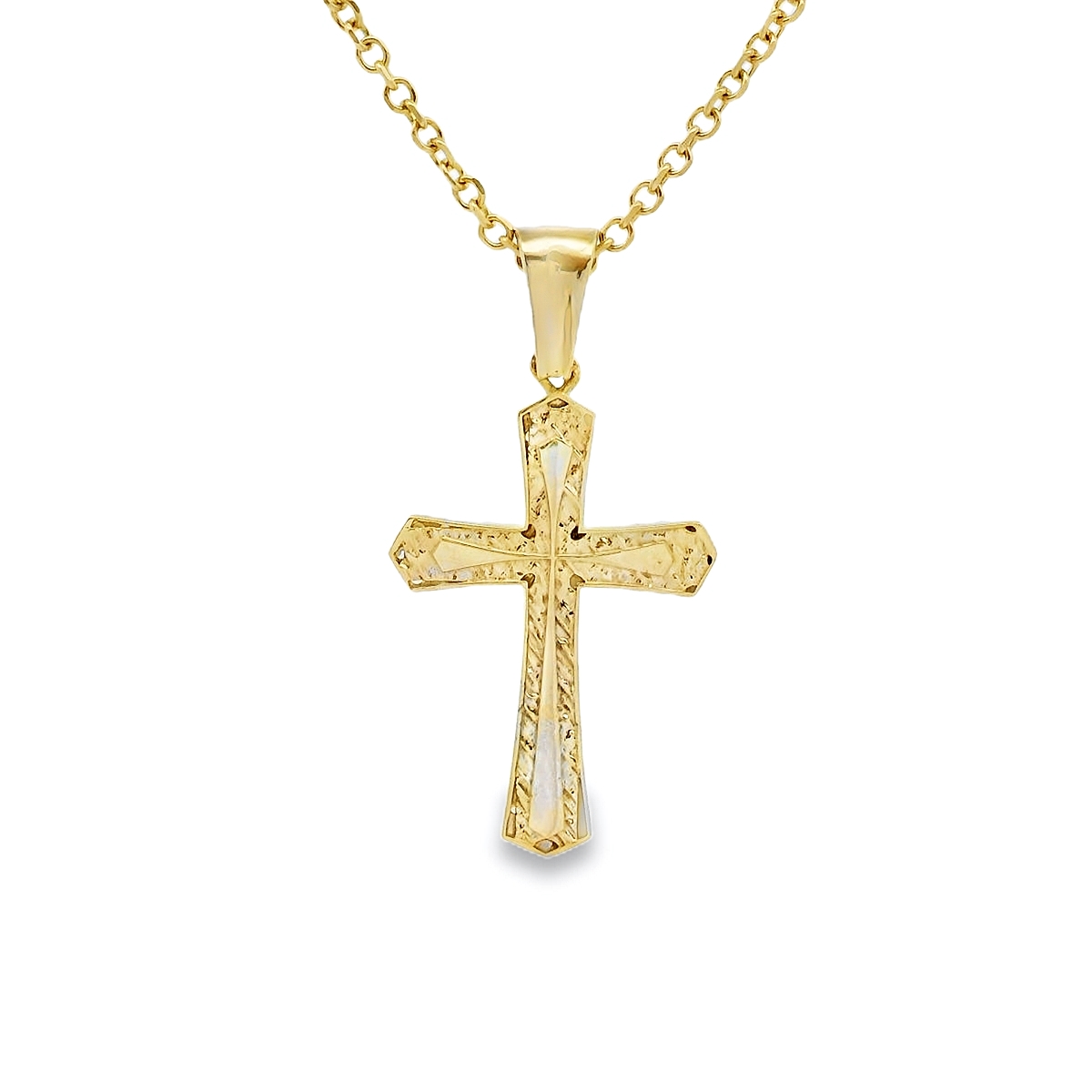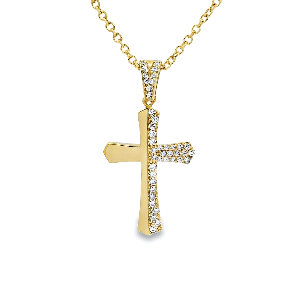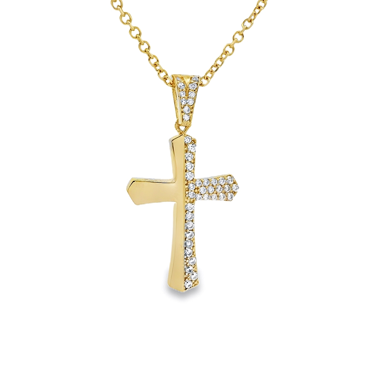 Women's cross in yellow gold 14 carat with cubic zirconia stones. The chain is sold separately.