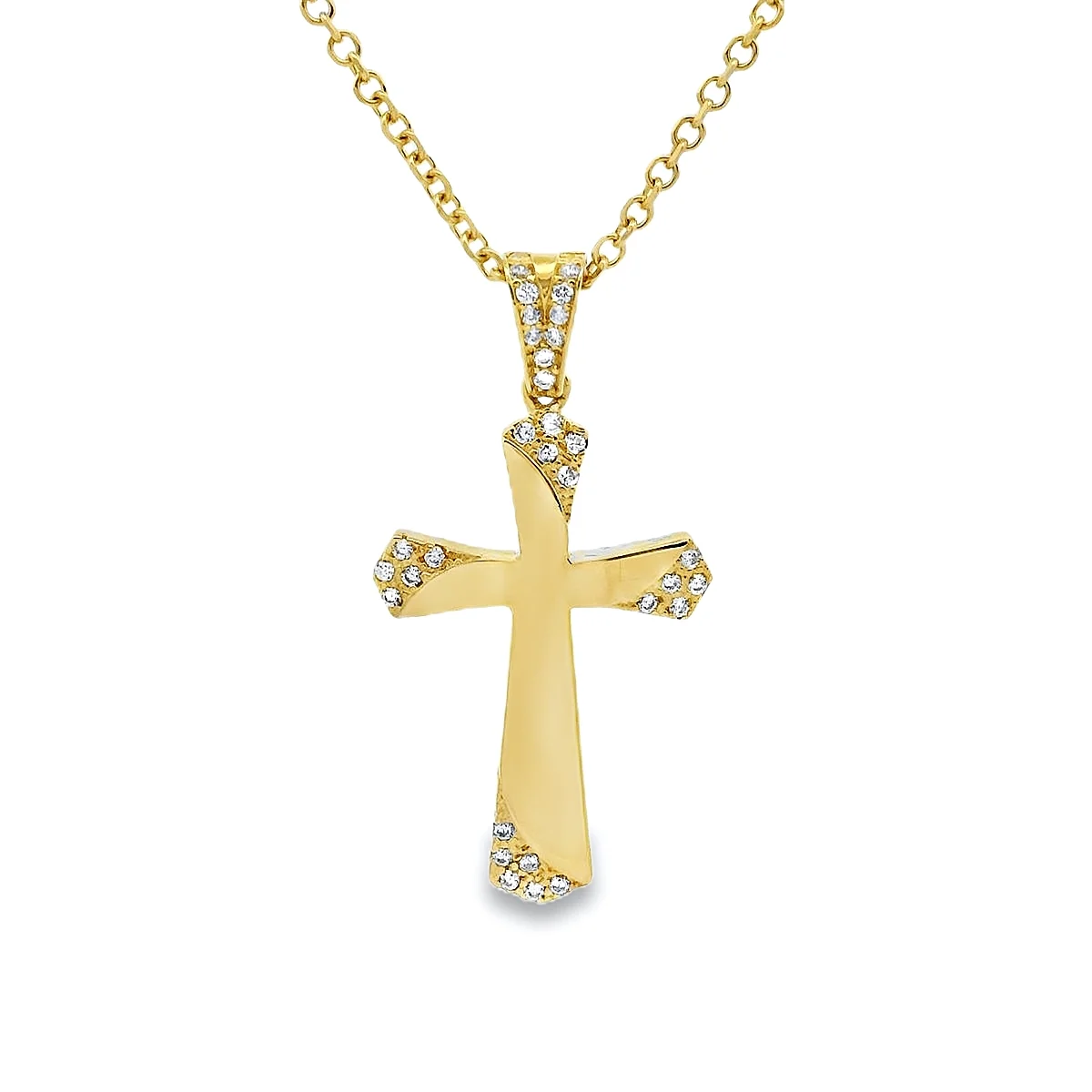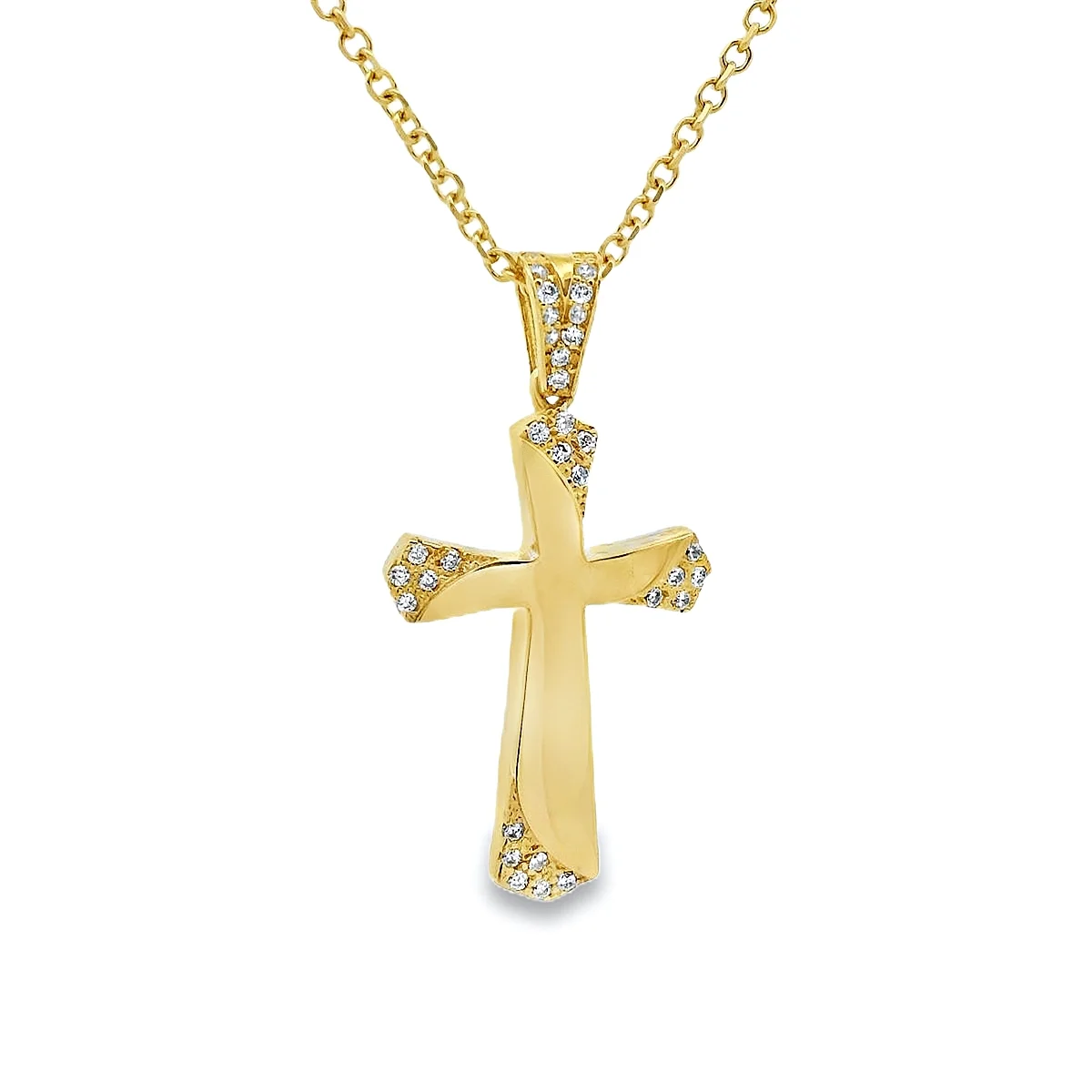 Women's cross in yellow gold 14 carat with cubic zirconia stones. The chain is sold separately.