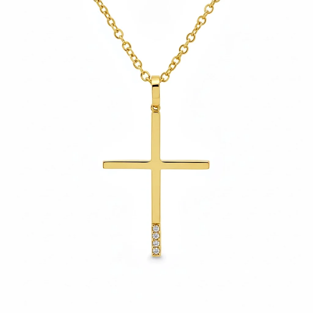 Women's cross in yellow gold 14 carat with cubic zirconia stones. The chain is sold separately.