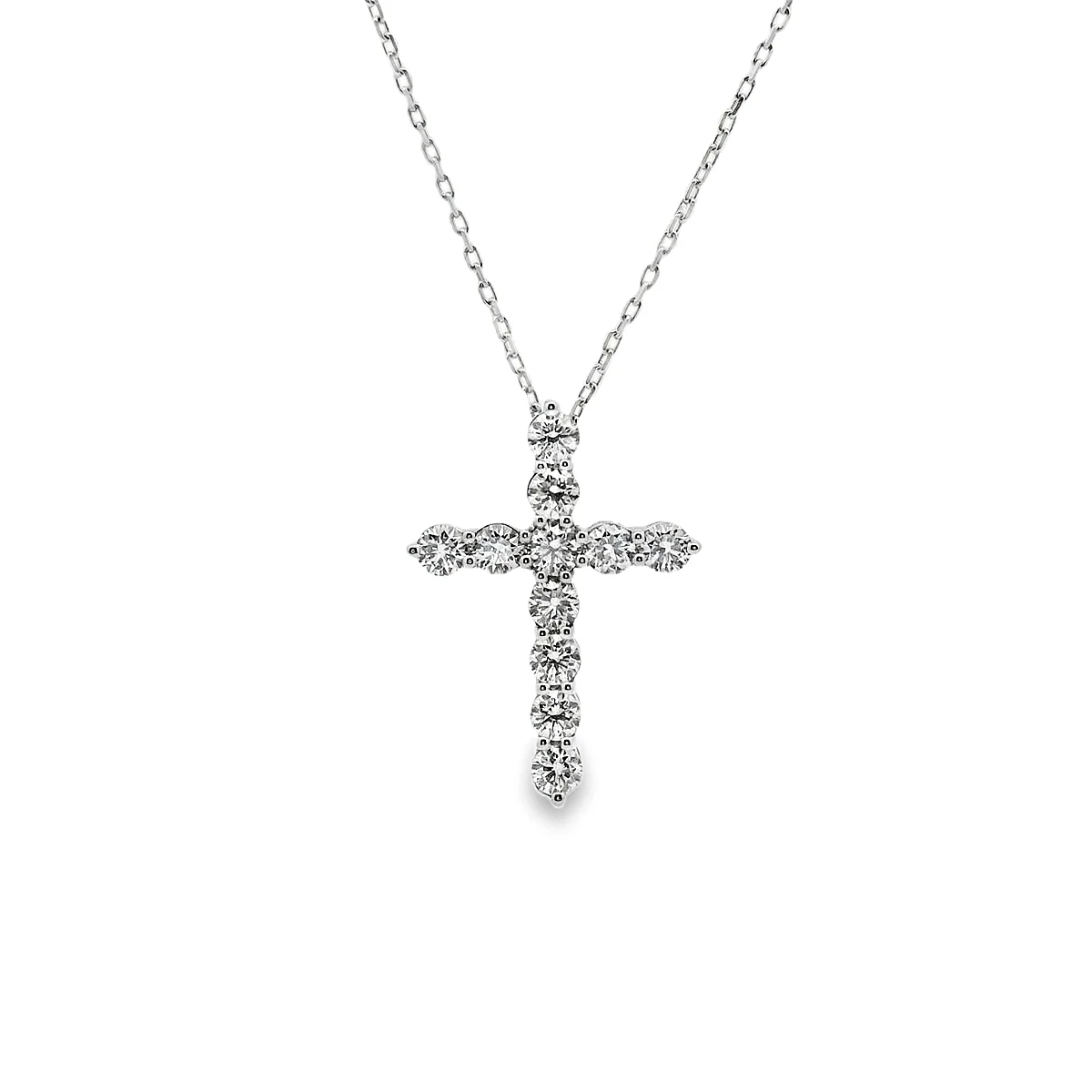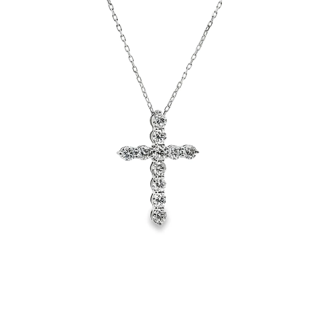 Γυναικείος σταυρός σε λευκόχρυσo 18 καράτια με λευκά διαμάντια σε κοπή μπριγιάν συνολικού βάρους 0,55ct, χρώματος G και καθαρότητας VS. Μήκος αλυσίδας 40cm.