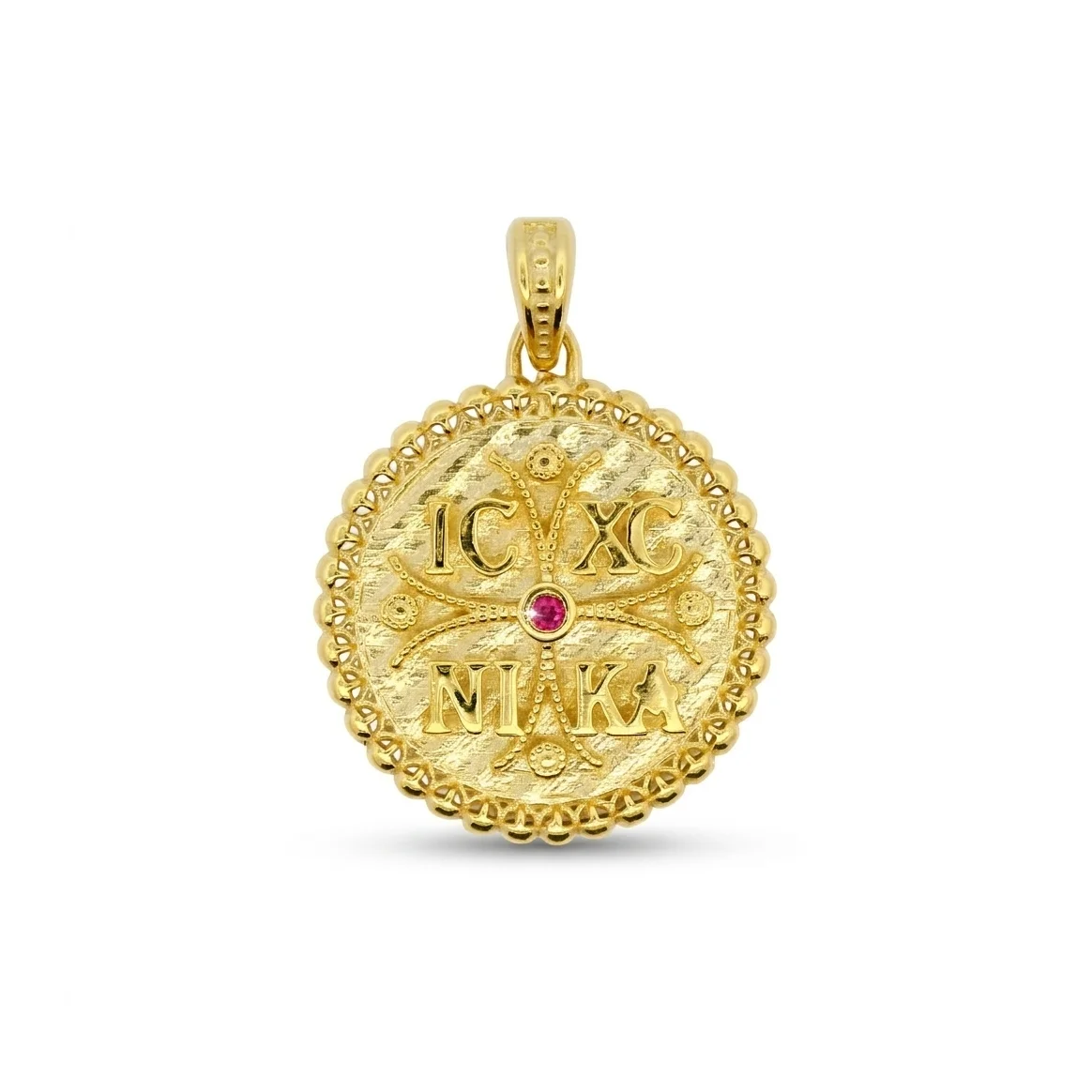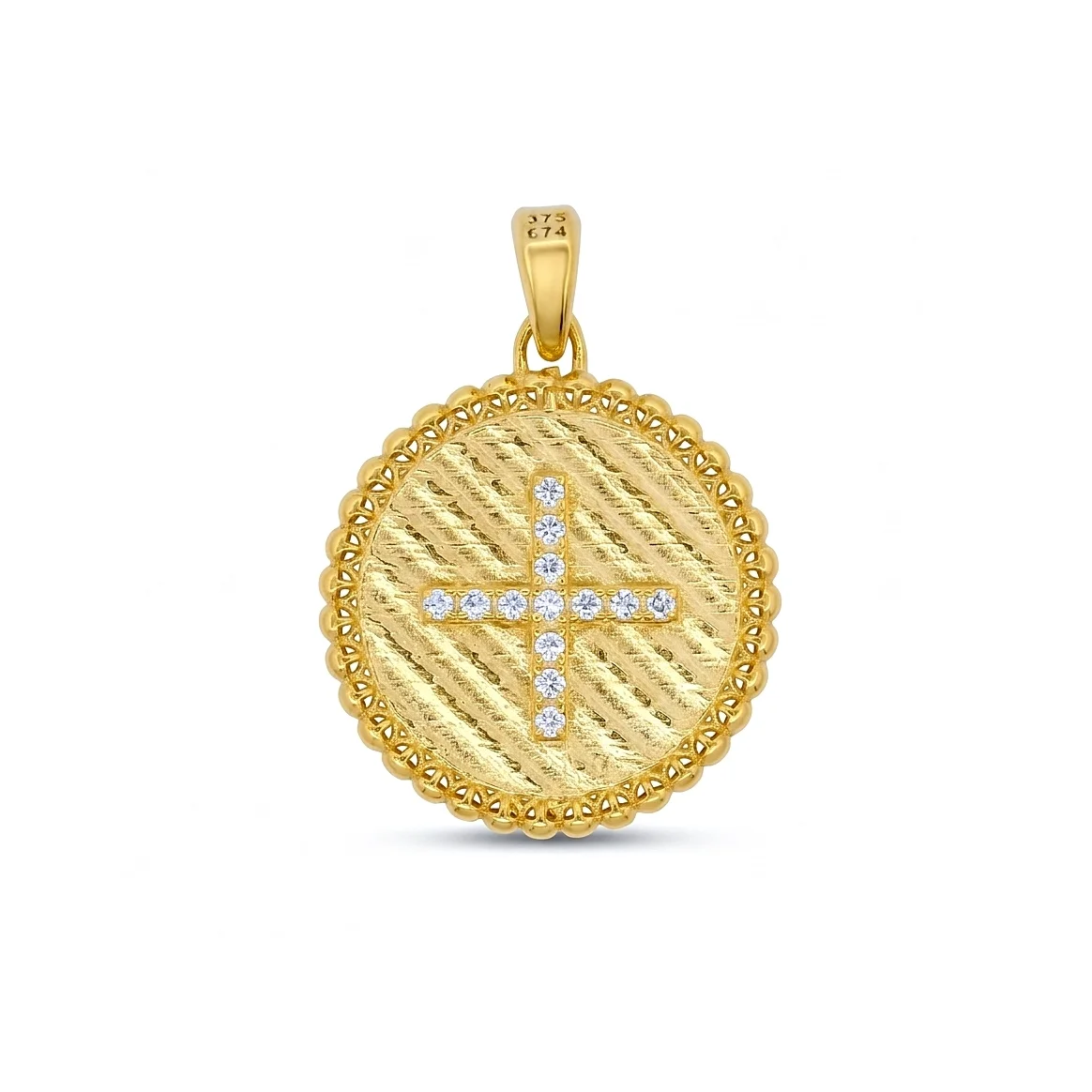 Double sided amulet in 9 carat gold and cubic zirconia stones.