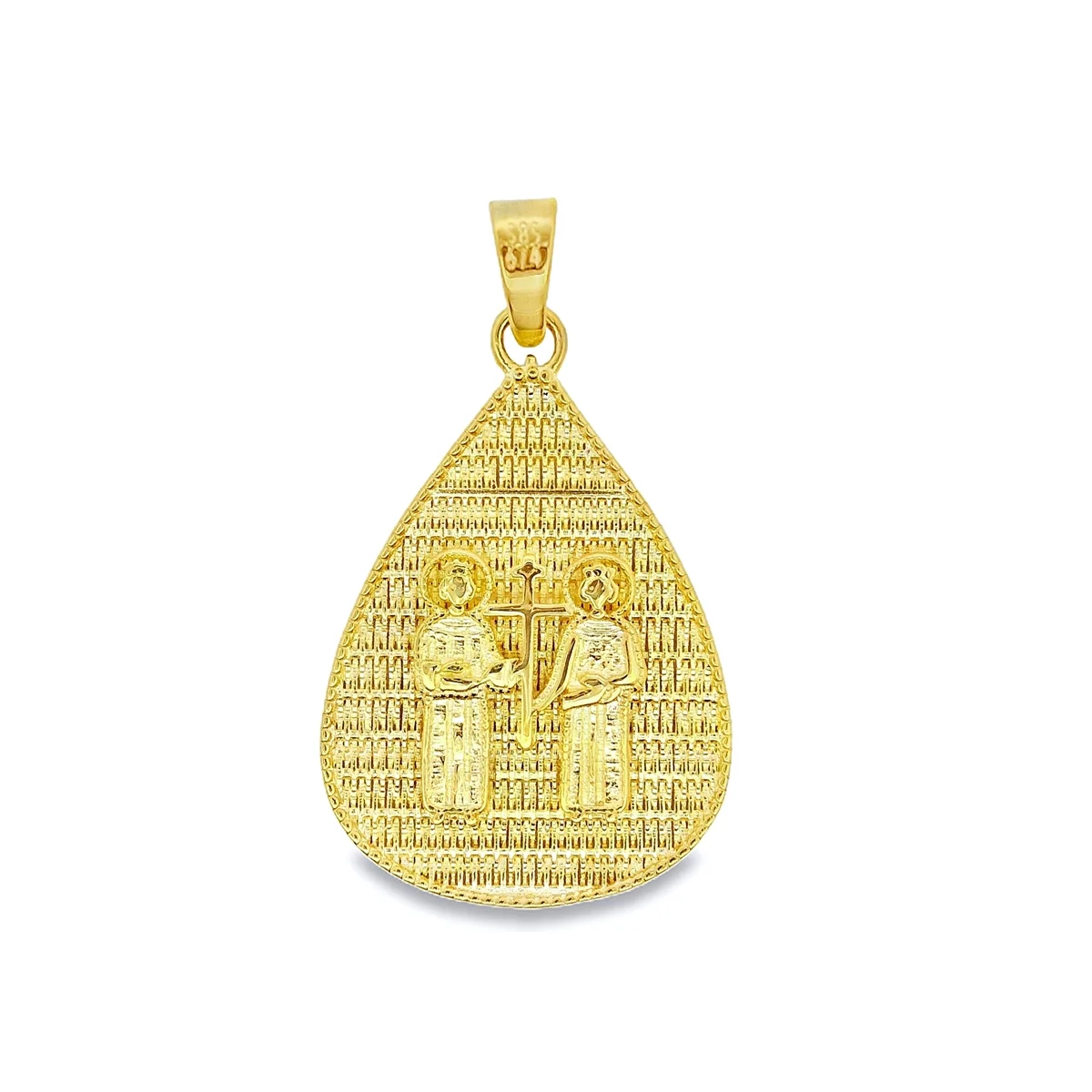 Φυλαχτό Κωνσταντινάτο διπλής όψης σε χρυσό 14 καρατίων και πέτρες ζιργκόν.