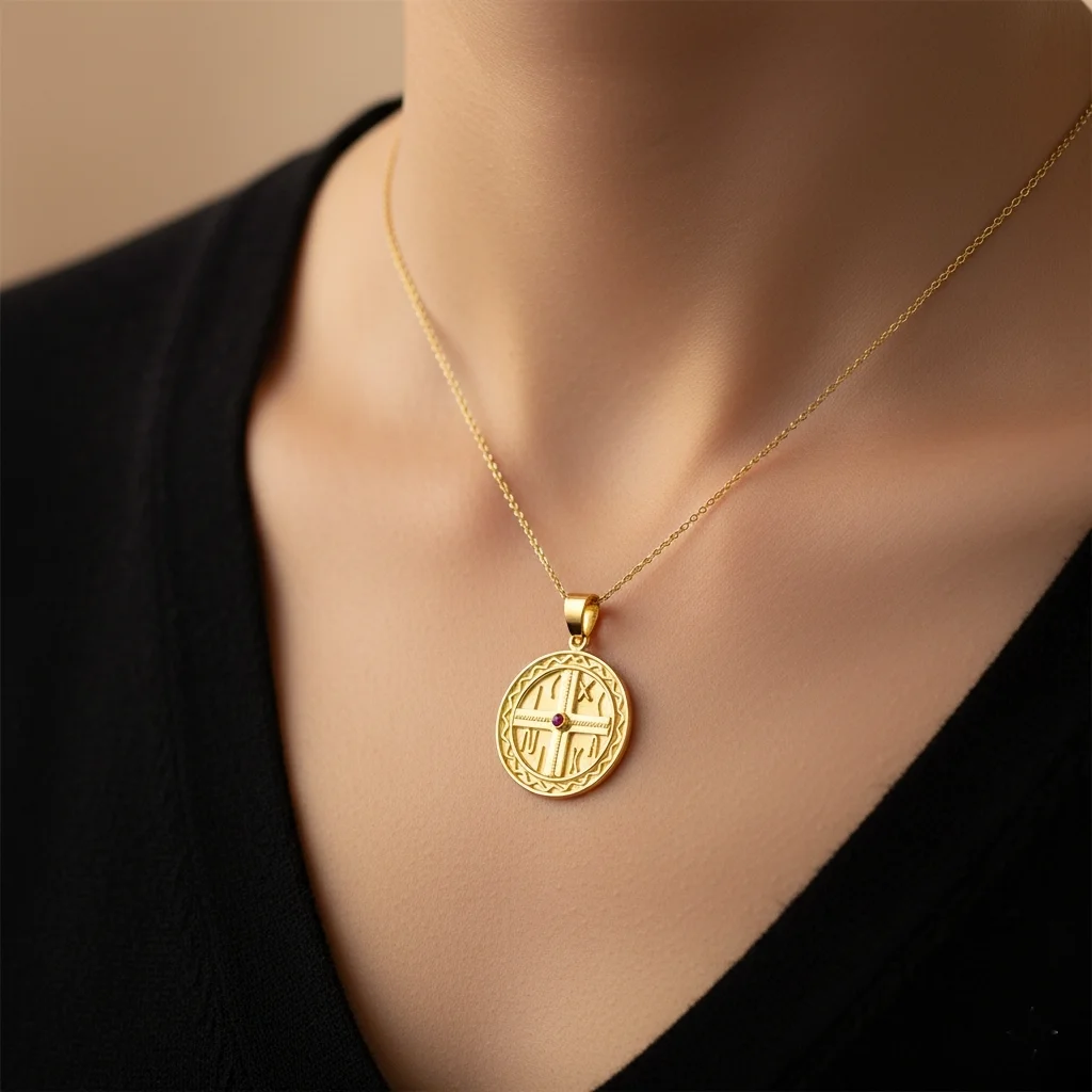 Handmade Constantinian amulet with ruby in 14 karat gold.