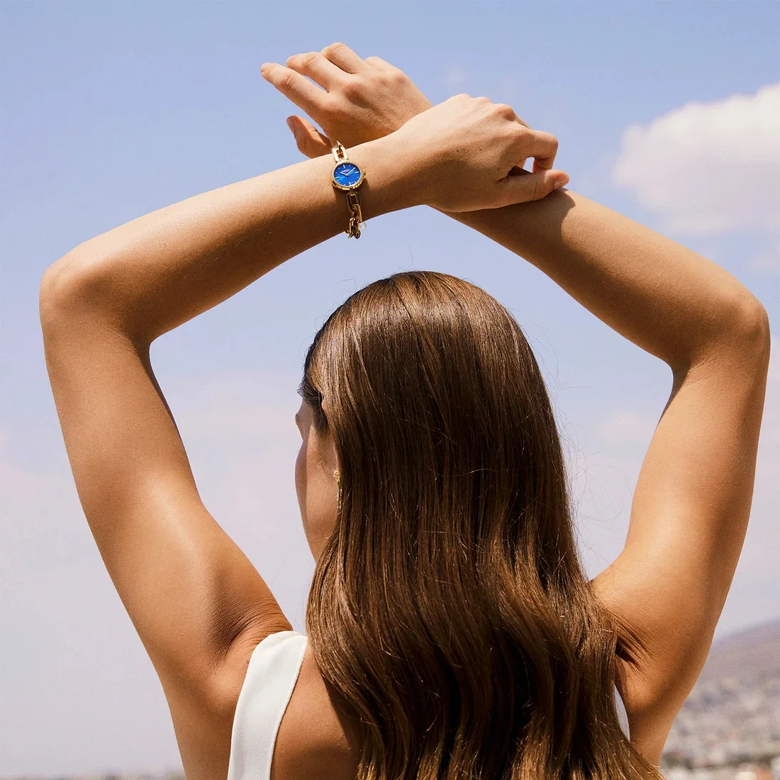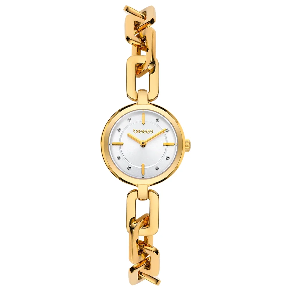 Γυναικείο ρολόι Breeze από επίχρυσο ανοξείδωτο ατσάλι με λευκό καντράν και μπρασελέ αλυσίδα.