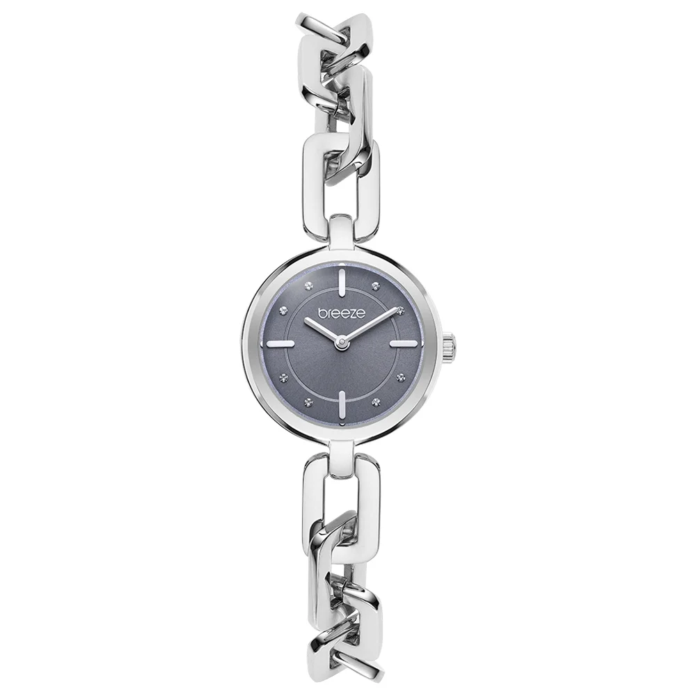 Γυναικείο ρολόι Breeze από ανοξείδωτο ατσάλι με γκρι καντράν και μπρασελέ αλυσίδα.