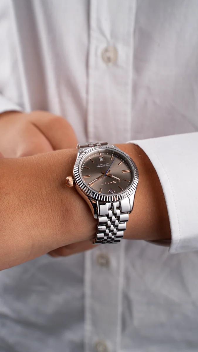 Women's Gant watch in two-tone stainless steel with grey dial and bracelet.