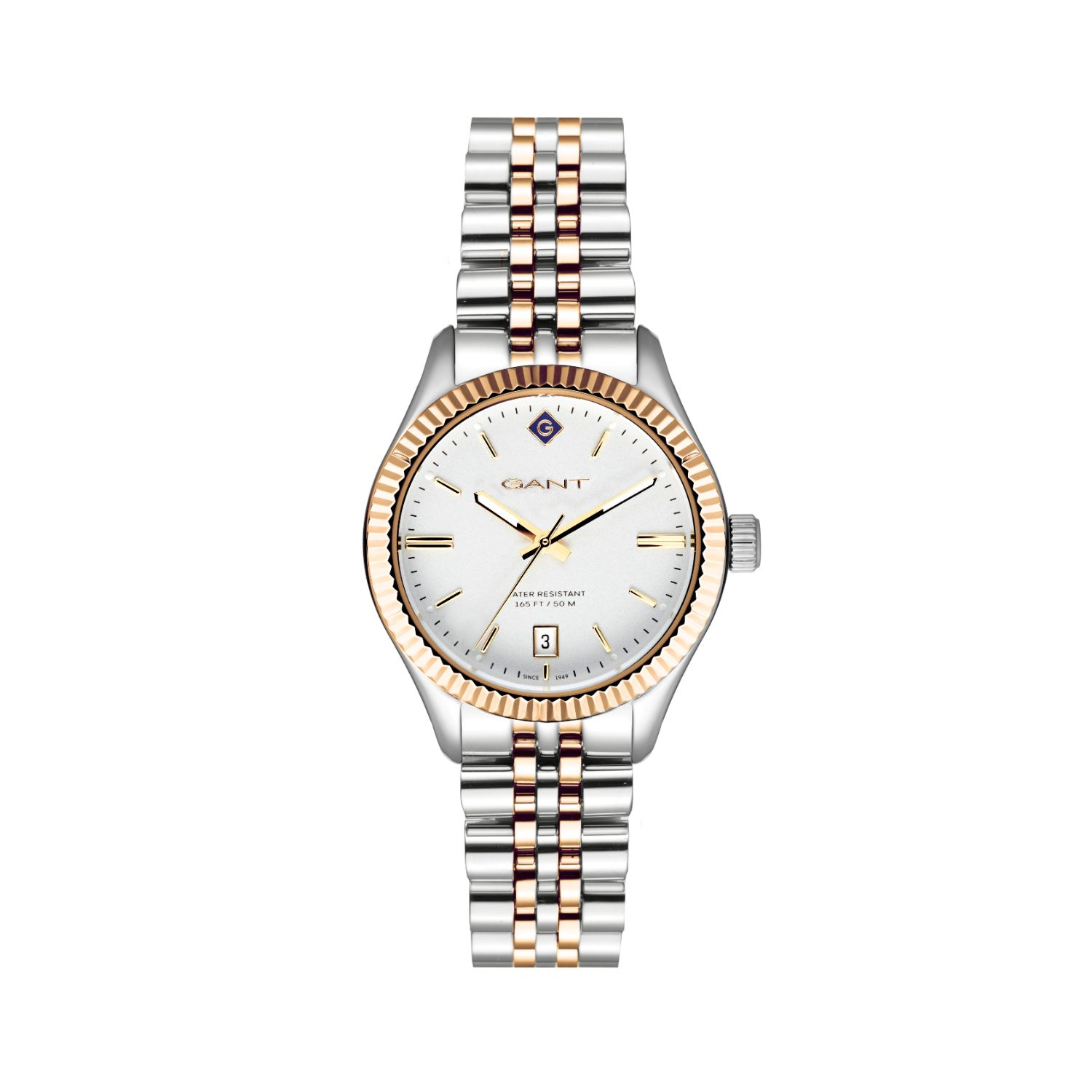 Women's Gant watch in two-tone stainless steel with white dial and bracelet.