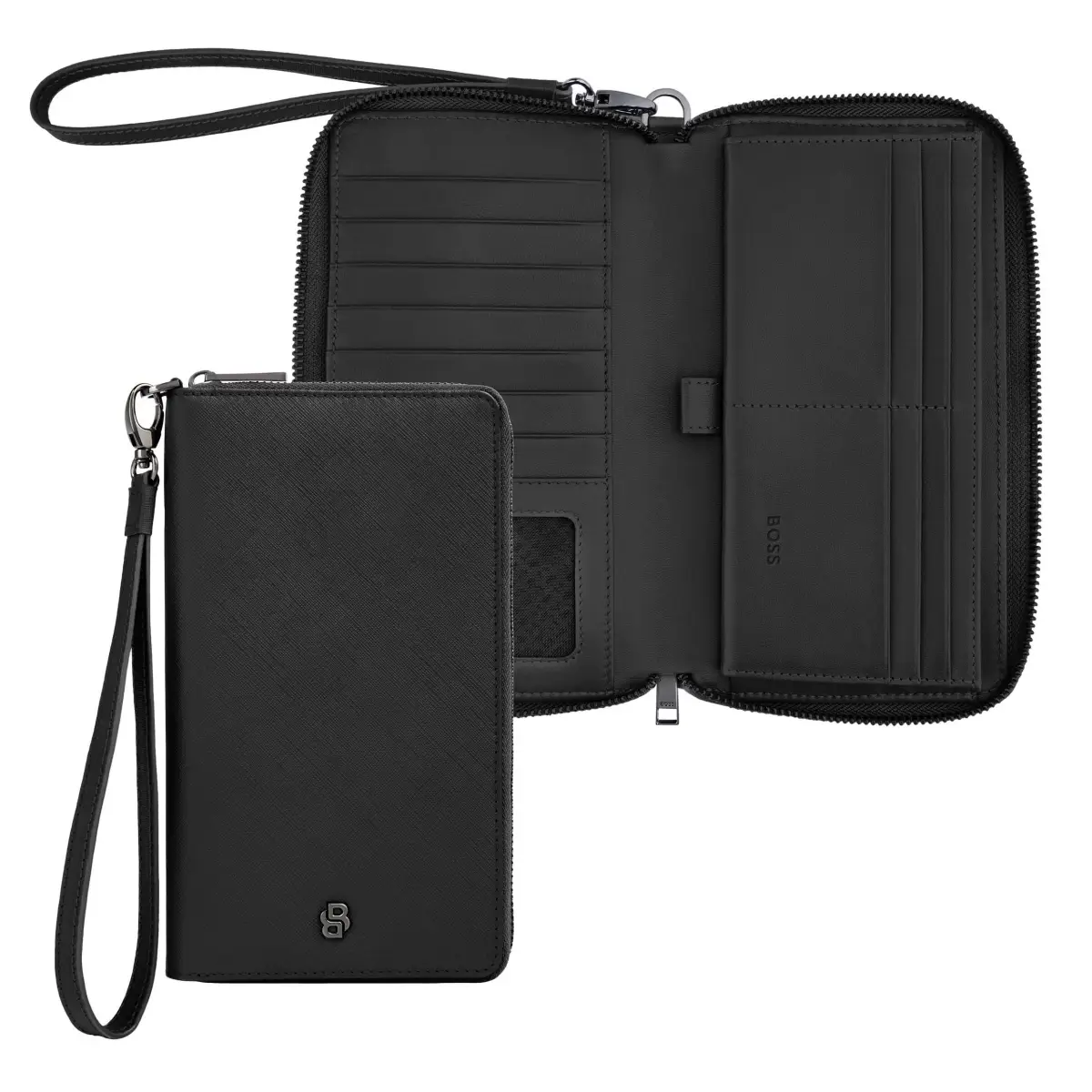 HUGO BOSS Travel Wallet Double B Saffiano Black HLL526A