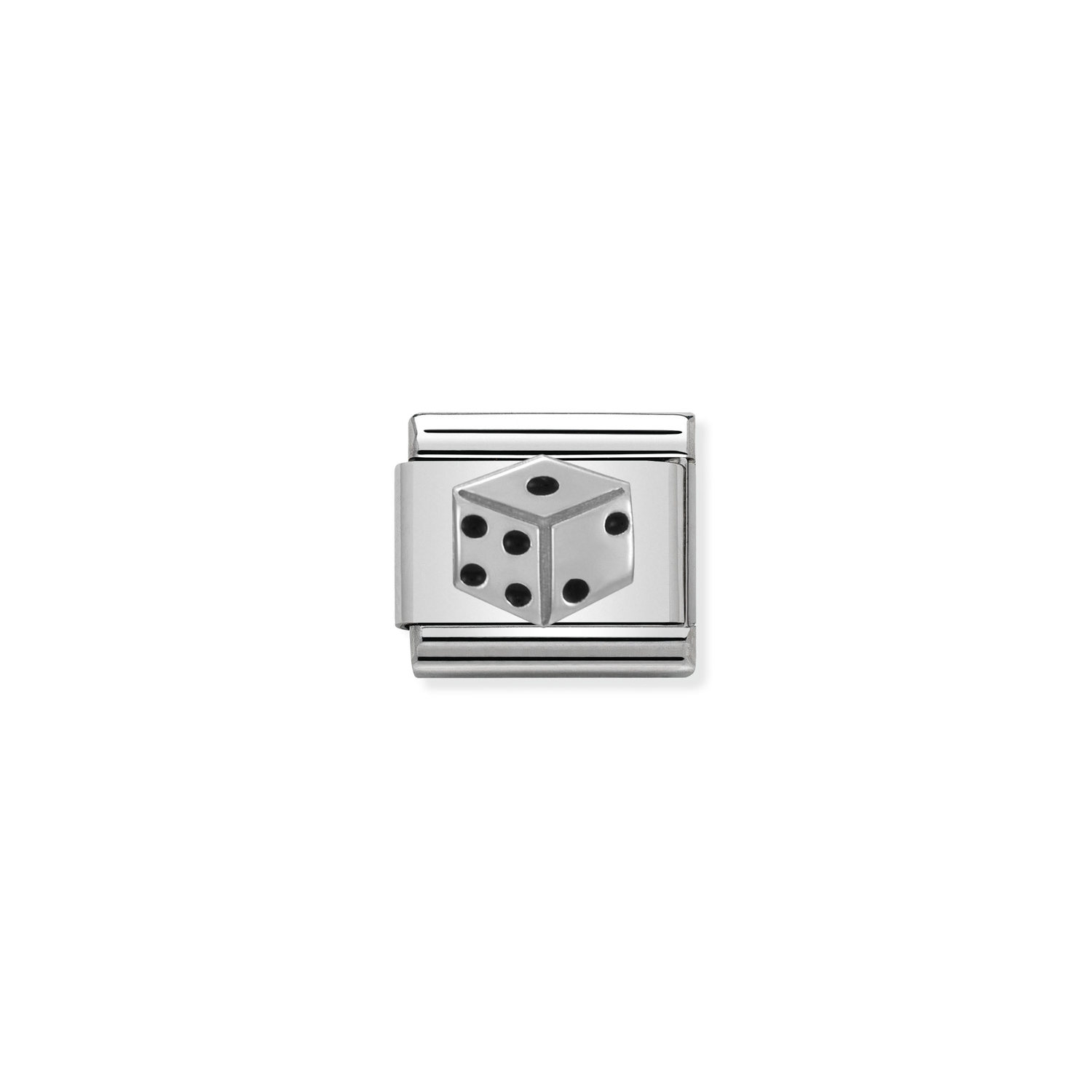Classic Charm for Original Composable Bracelet with Dice symbol in sterling silver, stainless steel and black enamel. Add your passions to your bracelet.