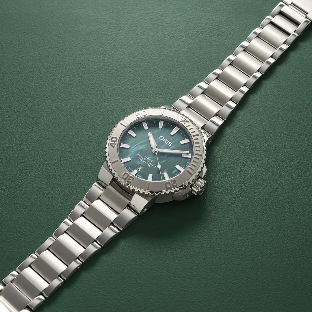 Oris presents the Oris X Bracenet and its new partnership with the social enterprise "Bracenet", which recycles and transforms fishing nets into accessories - and now, striking watch dials, all unique and different from each other. With its distinctive green dial and stainless steel bracelet, this special edition watch, powered by the Caliber 733, is inspired by Oris' "Change For The Better" campaign.