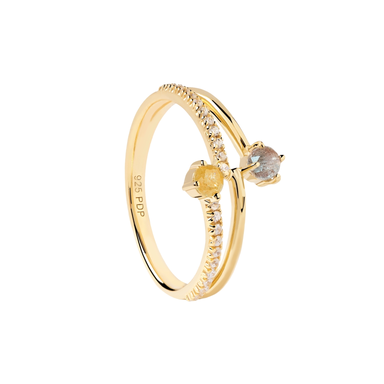 PDPAOLA ring made of gold plated silver 925 with labradorite and cubic zirconia. Διαθέσινο σε νουμερο 54.