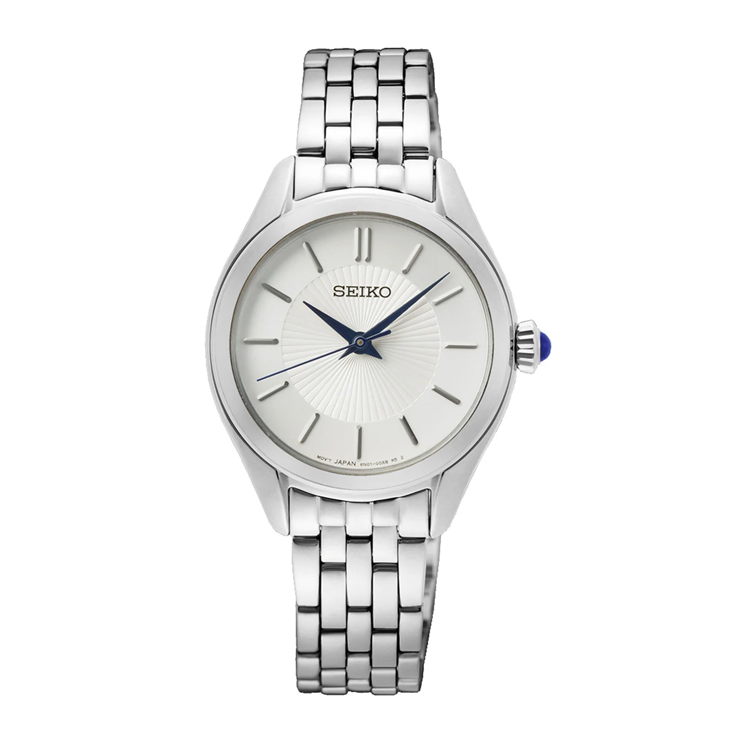 Γυναικείο ρολόι SEIKO από ανοξείδωτο ατσάλι με λευκό καντράν και μπρασελέ.