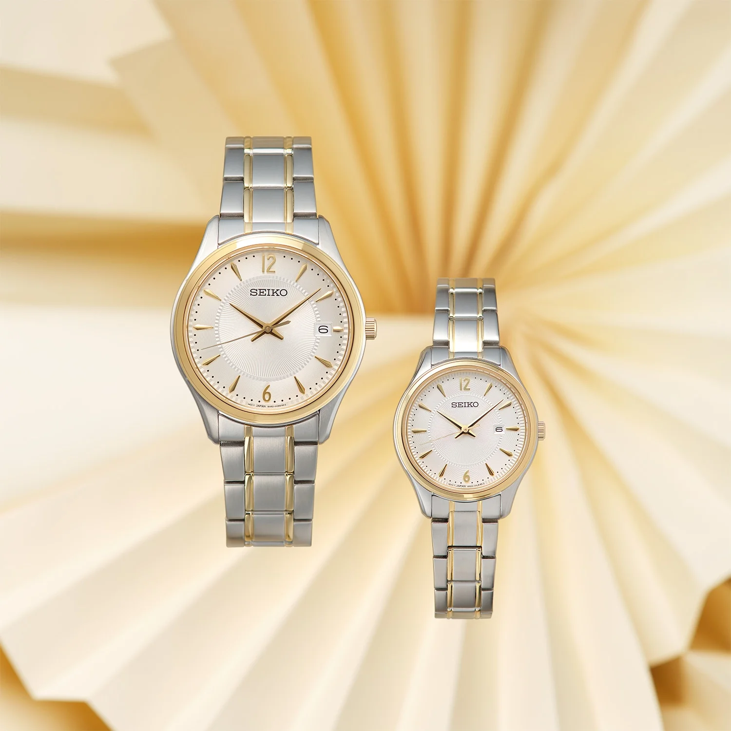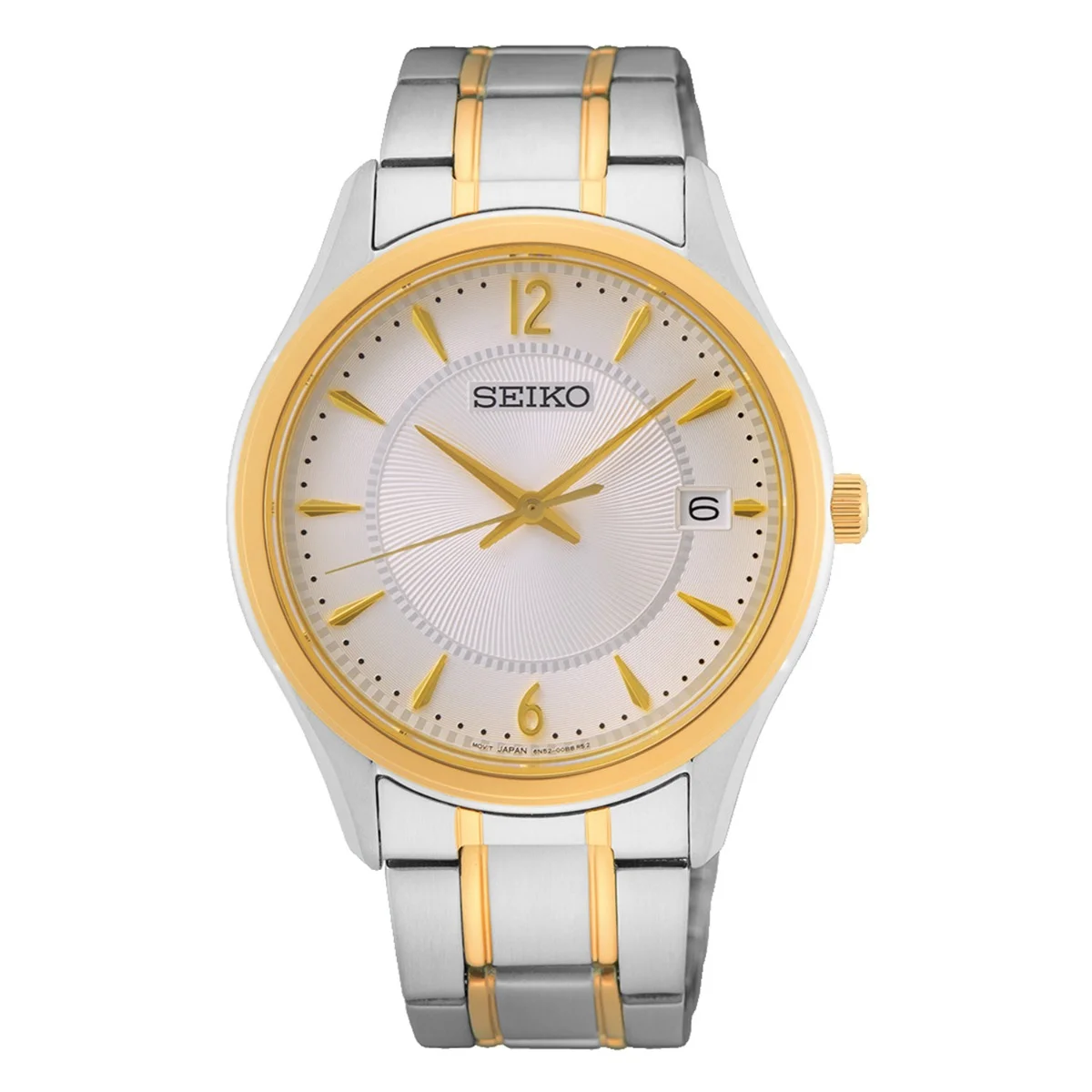 Ανδρικό ρολόι SEIKO από δίχρωμο ανοξείδωτο ατσάλι με λευκό καντράν και μπρασελέ.