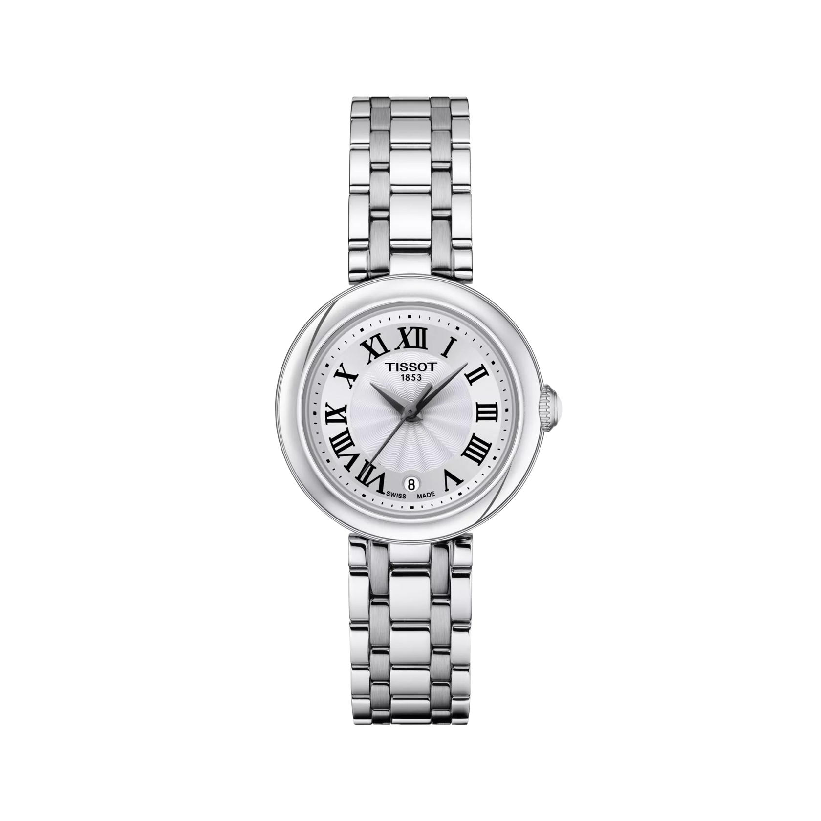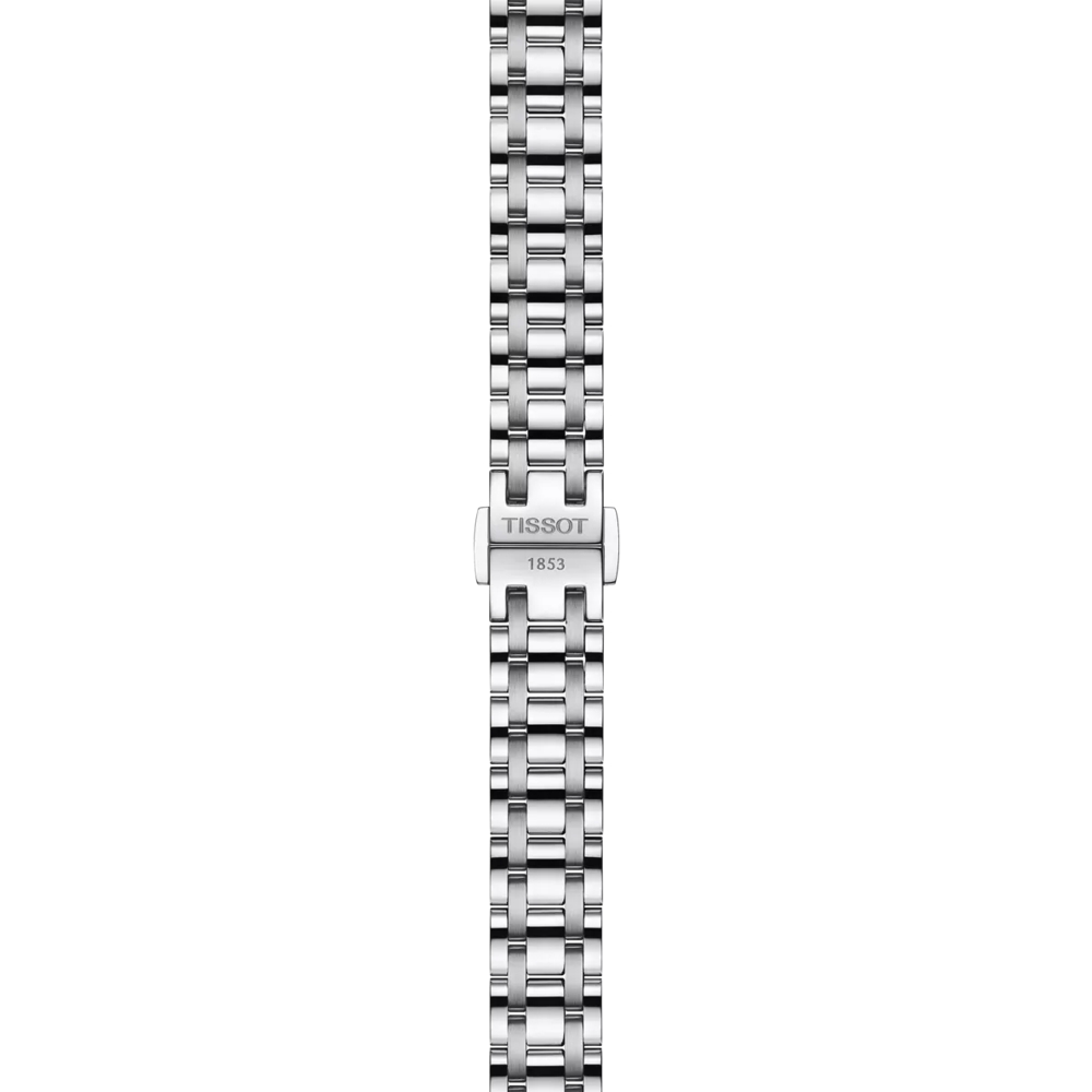 Γυναικείο ρολόι Tissot ελβετικής κατασκευής από ανοξείδωτο ατσάλι με ασημί καντράν και μπρασελέ.