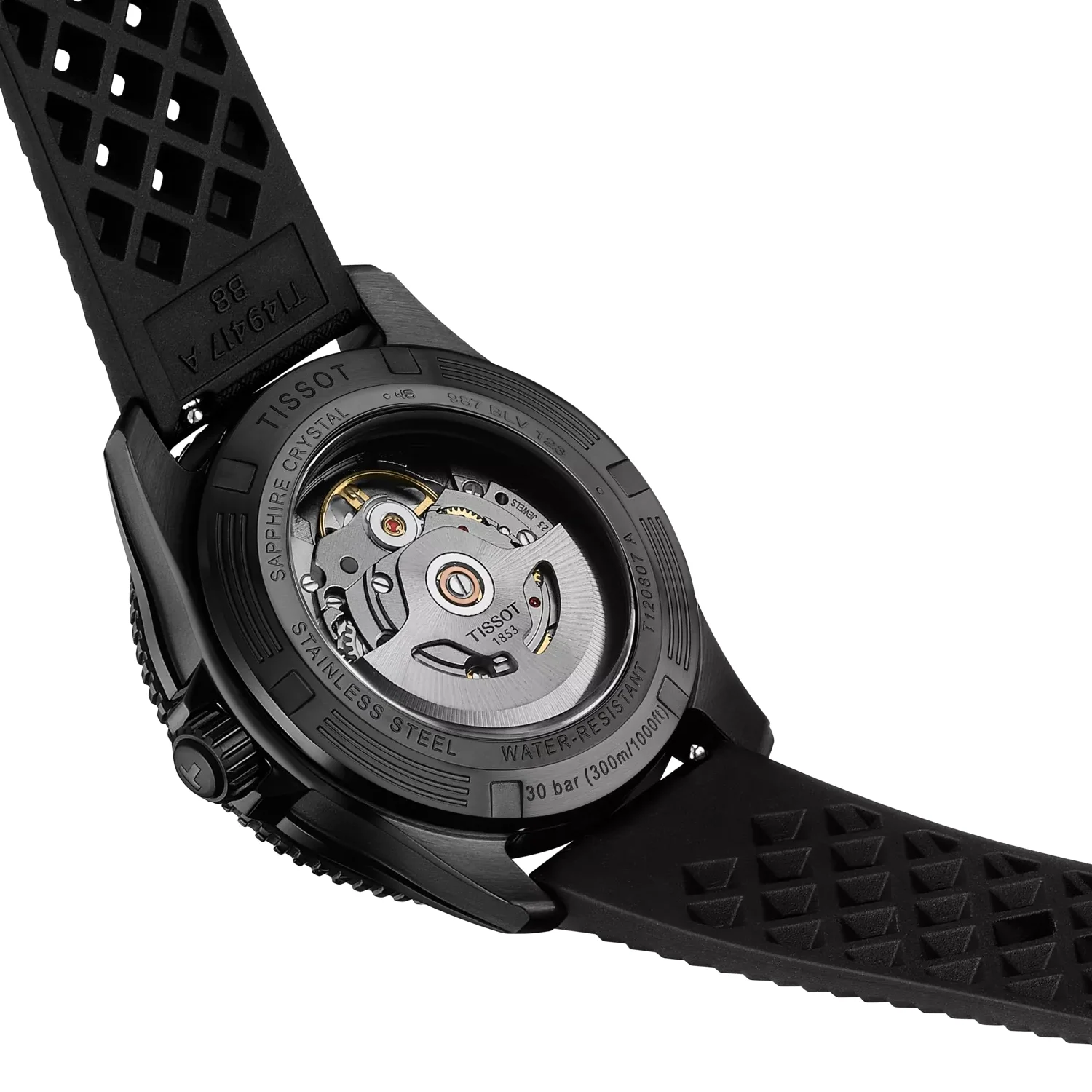 Tissot watch with Swiss automatic movement in stainless steel with black PVD coating, with black dial and strap.