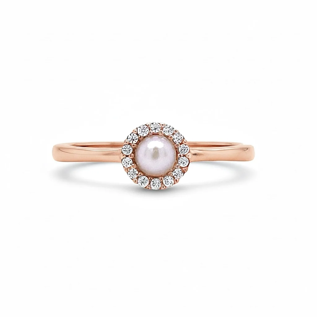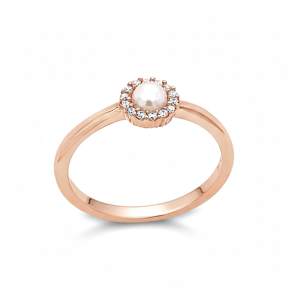 Αυτό το υπέροχο δαχτυλίδι συνδυάζει την κλασική φινέτσα του Μαργαριταριού με τη σύγχρονη λάμψη των ζιργκόν, δημιουργώντας ένα εντυπωσιακό μονόπετρο. Κατασκευασμένο από Ροζ Χρυσό 14 Καρατίων. Στο κέντρο δεσπόζει ενα λευκό, στρογγυλό μαργαριτάρι, το οποίο περιβάλλεται από ένα φωτοστέφανο (Halo) με μικρά, λαμπερά λευκά ζιργκόν. Η γάμπα του δαχτυλιδιού είναι λεπτή και γυαλιστερή, αναδεικνύοντας το εντυπωσιακό κεντρικό μοτίφ. Κλασικό, Ρομαντικό, Elegant. Ιδανικό για: Δαχτυλίδι αρραβώνα (ως εναλλακτική), ή για δώρο επετείου/γενεθλίων.