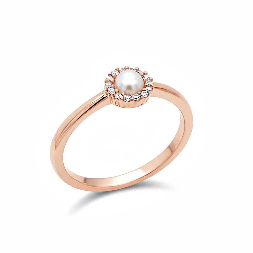 Δακτυλίδι Ροζέτα με Μαργαριτάρι και ζιργκόν σε ροζ χρυσό 14 καρατίων.