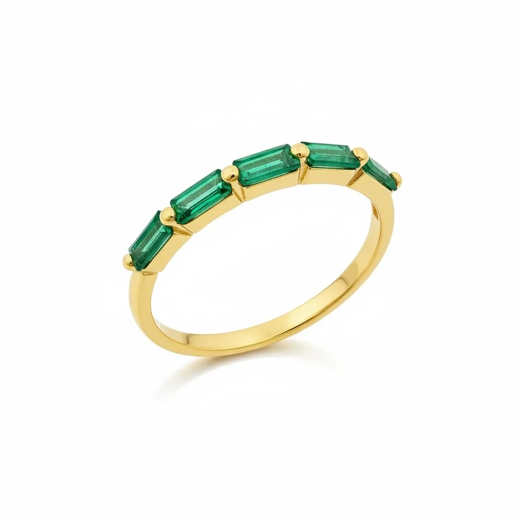 Δακτυλίδι σειρέ σε χρυσό 14 καρατίων με Lab Created σμαράγδια σε κοπή baguette εξαιρετικής ποιότητας και λάμψης συνολικού βάρους 0.48ct.