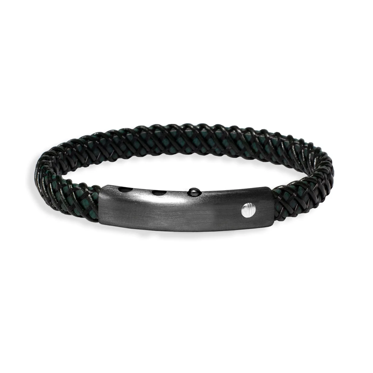 Ανδρικό Βραχιόλι Borsari από ανοξείδωτο ατσάλι και δέρμα σε πράσινο και μαύρο χρώμα.