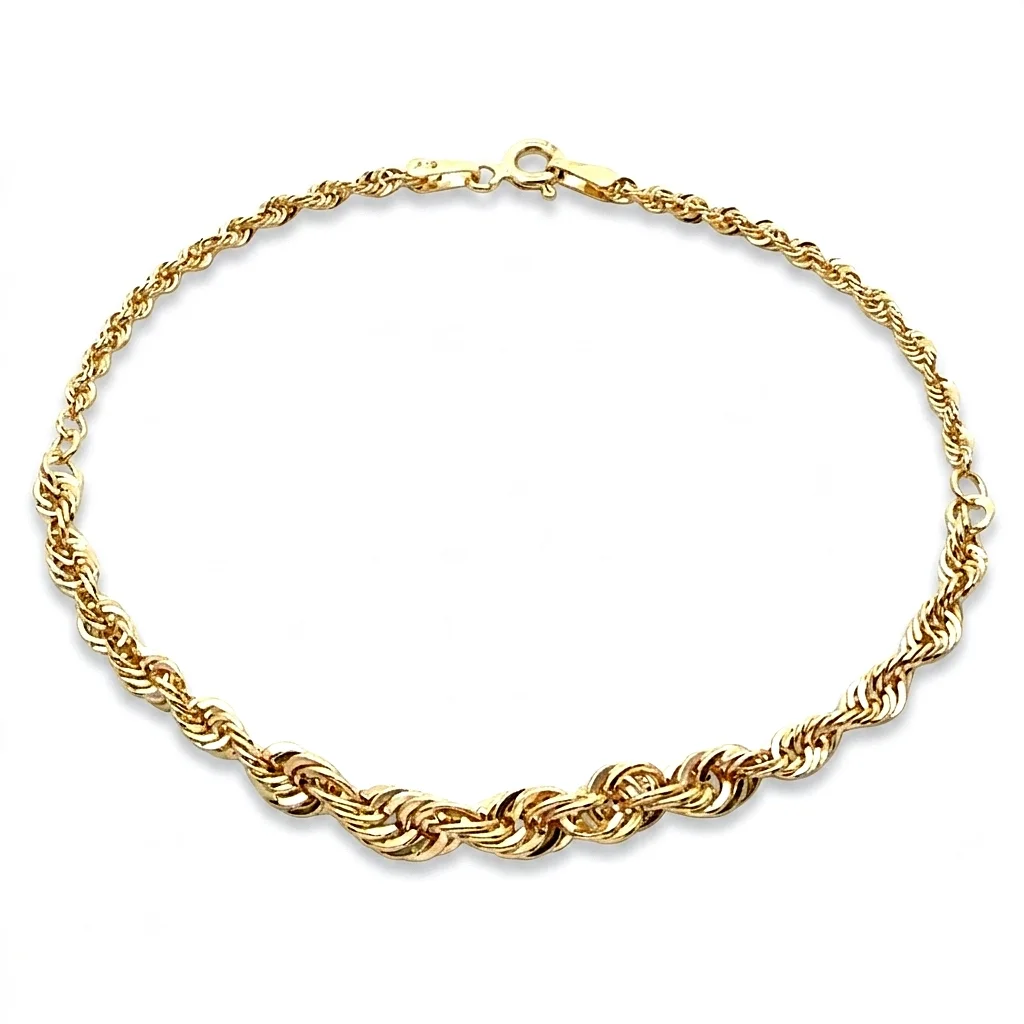 Αναβαθμίστε την εμφάνισή σας με αυτό το εντυπωσιακό χρυσό βραχιόλι σε σχέδιο Rope. Κατασκευασμένο από χρυσό 9 Καρατίων, το συγκεκριμένο κόσμημα συνδυάζει την κλασική αισθητική με τη σύγχρονη λάμψη, αποτελώντας την ιδανική επιλογή για κάθε περίσταση.