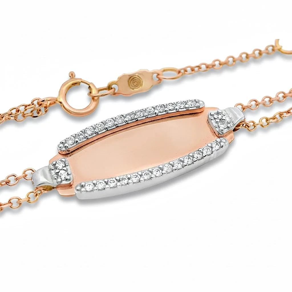 Βραχιόλι Ταυτότητα με πέτρες ζιργκόν σε ροζ και λευκό χρυσό 14 καρατίων. Μήκος αλυσίδας 18cm.
