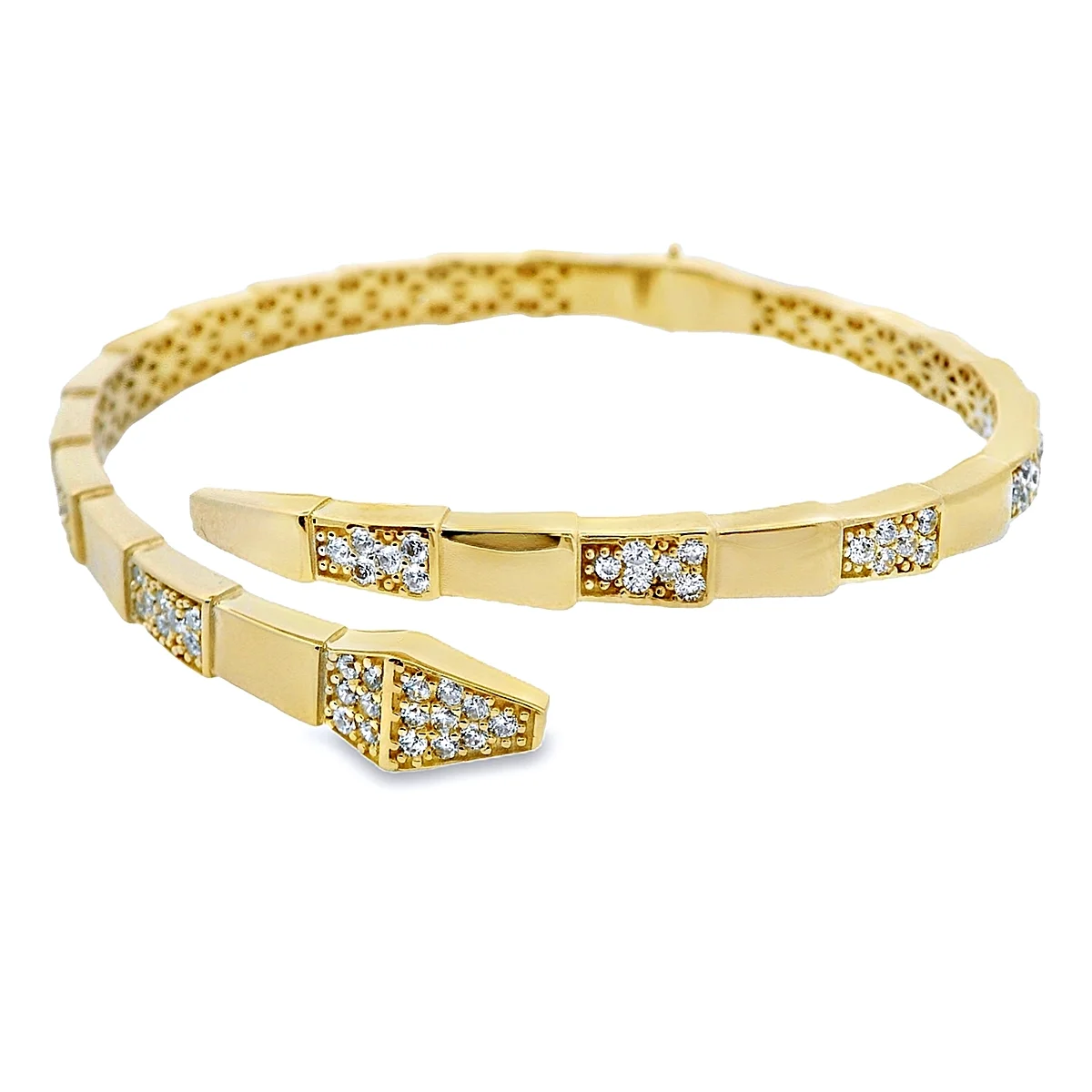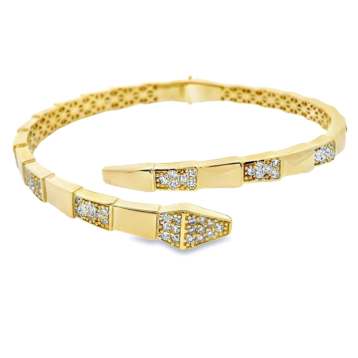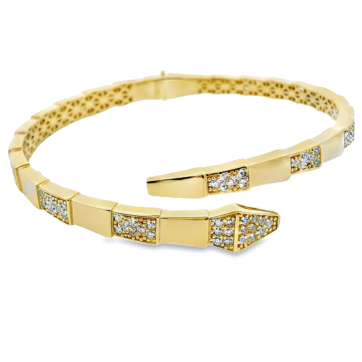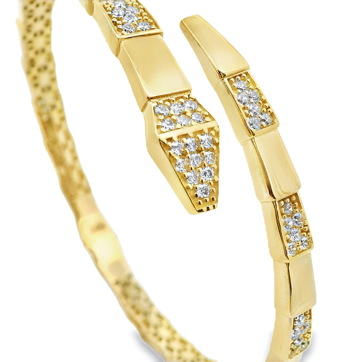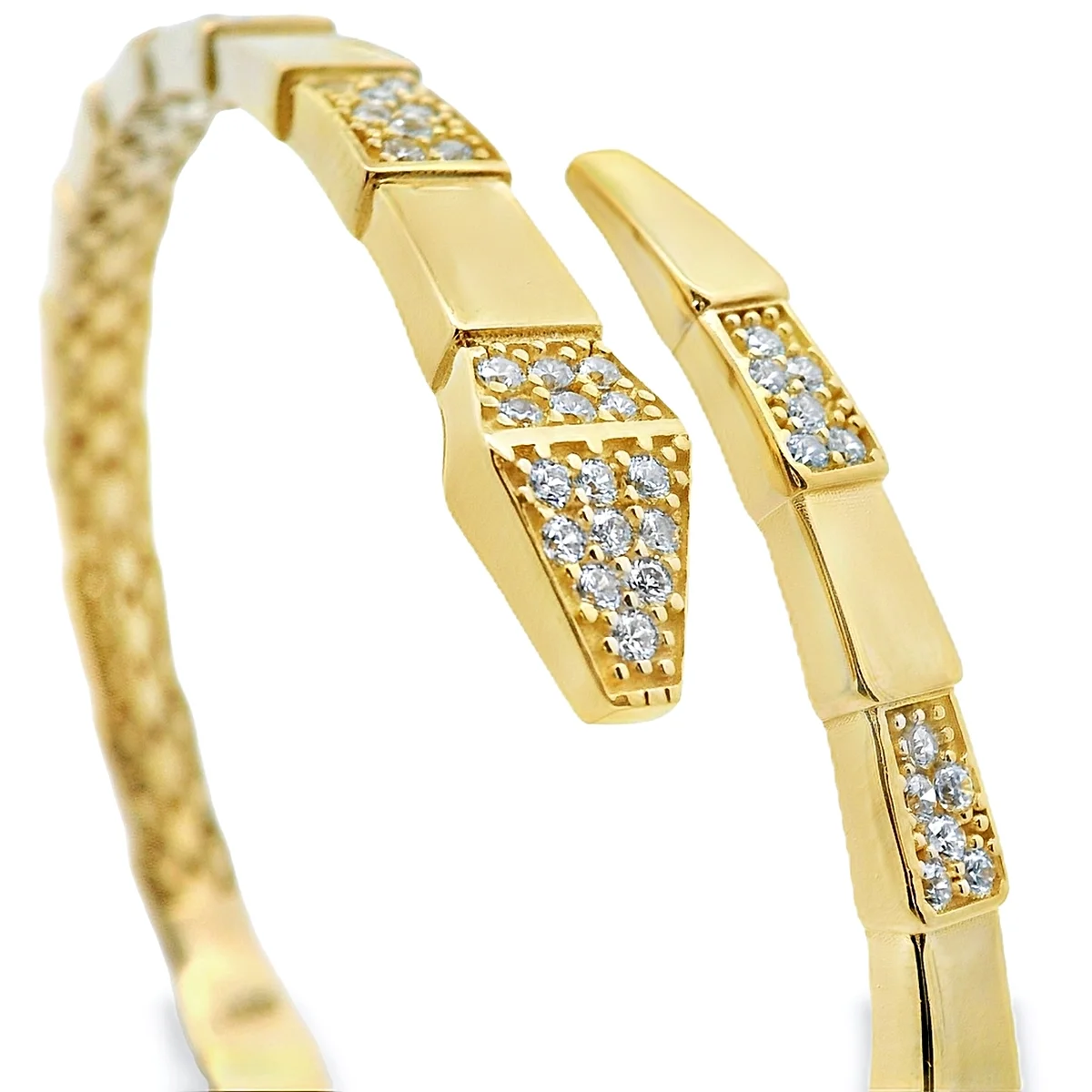 Βραχιόλι χειροπέδα γυναικεία σε 14 καράτια χρυσό με πέτρες ζιργκόν.