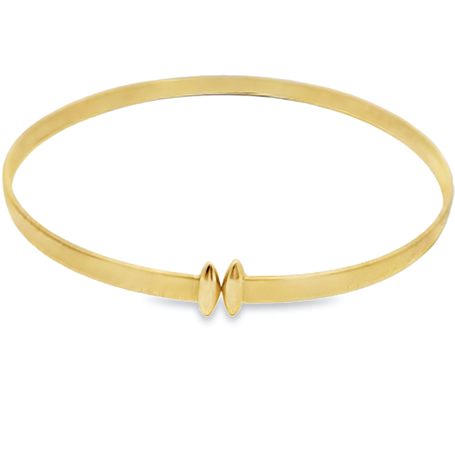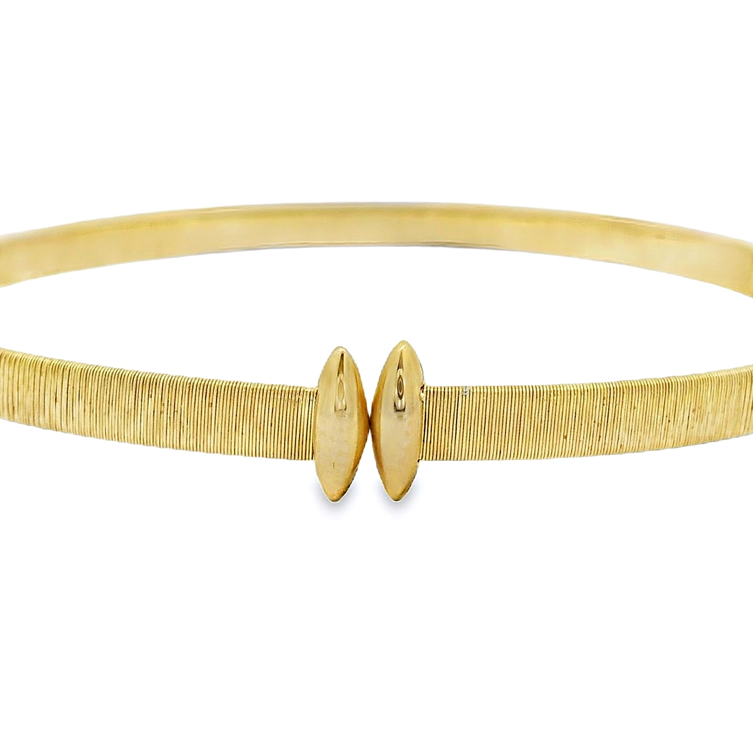 Βραχιόλι χειροπέδα σε 14 καράτια κίτρινο χρυσό με σατινέ φινίρισμα. Πλατος 3,90mm.