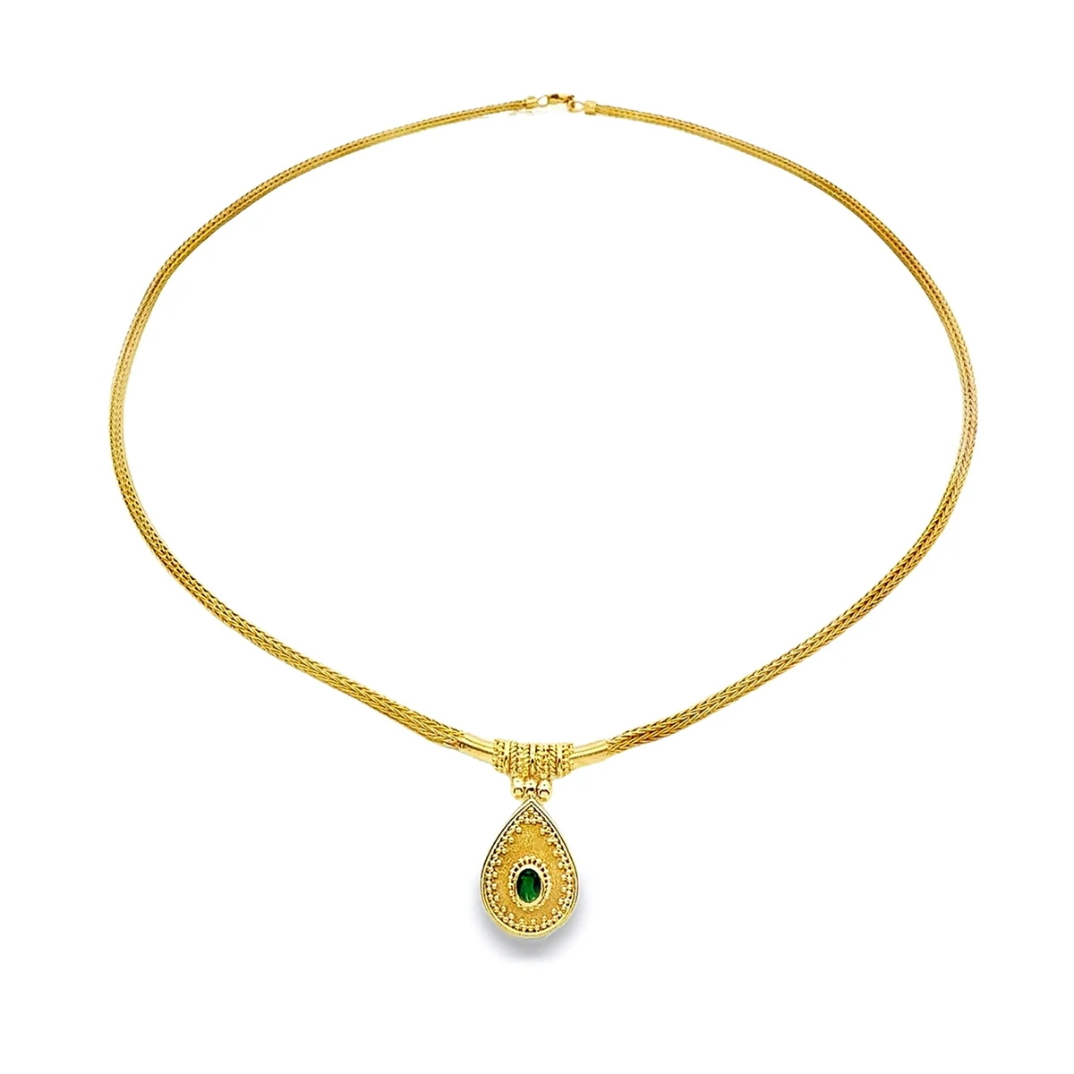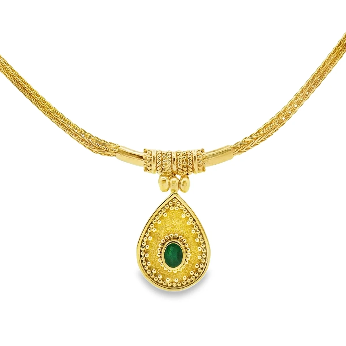 Βυζαντινό Χειροποίητο Κολιέ σε χρυσό 18 καράτια με σμαράγδια.. Μηκος 45cm.
