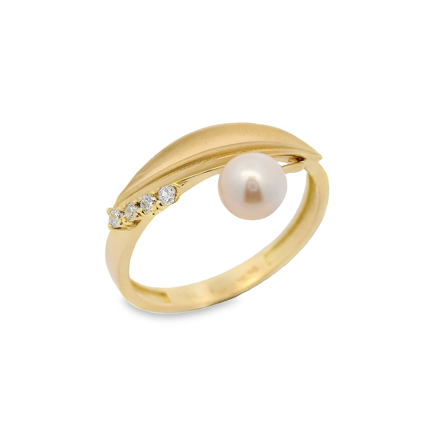 Δακτυλιδι γυναικείο με μαργαριτάρι σε χρυσό 14 καρατίων και ζιργκόν.