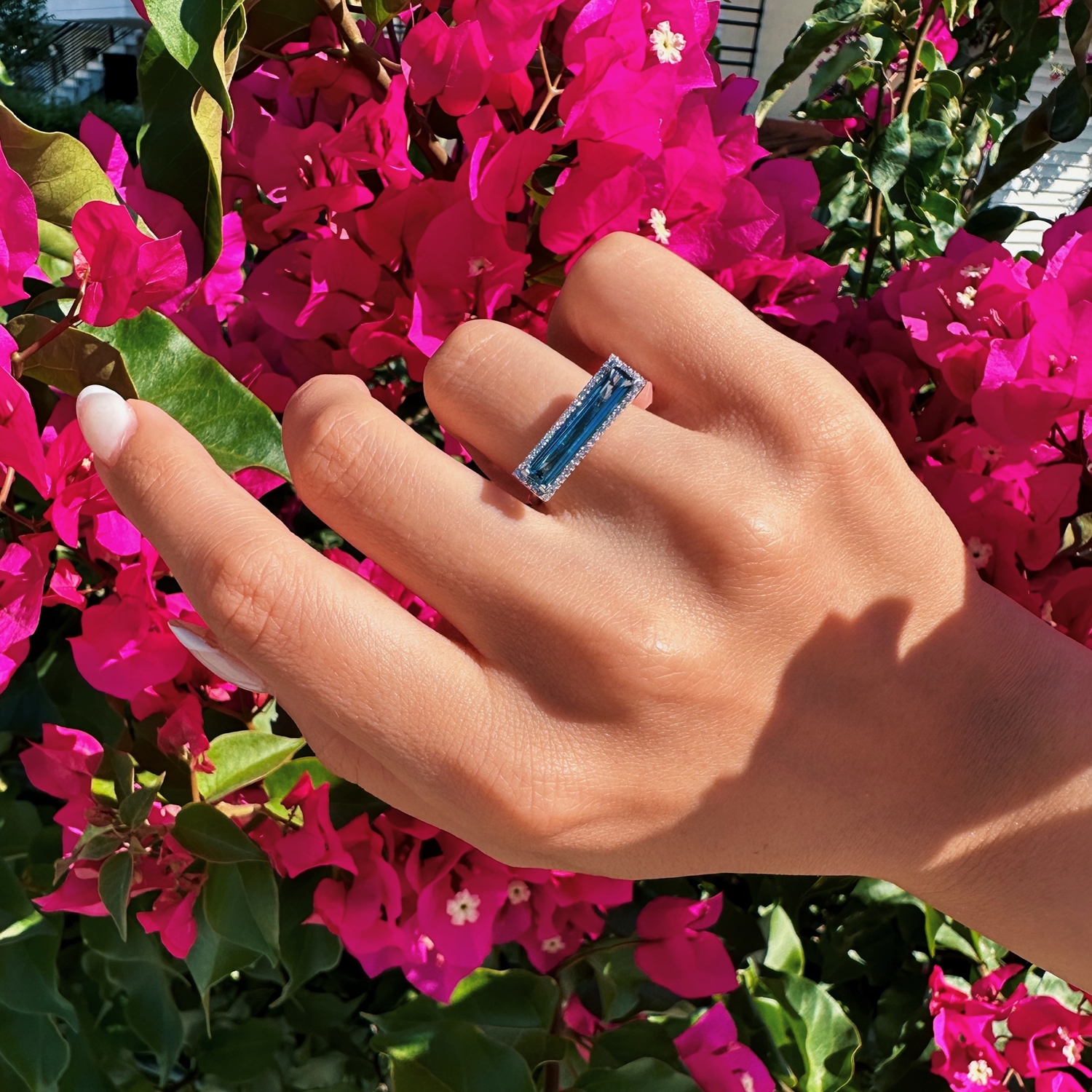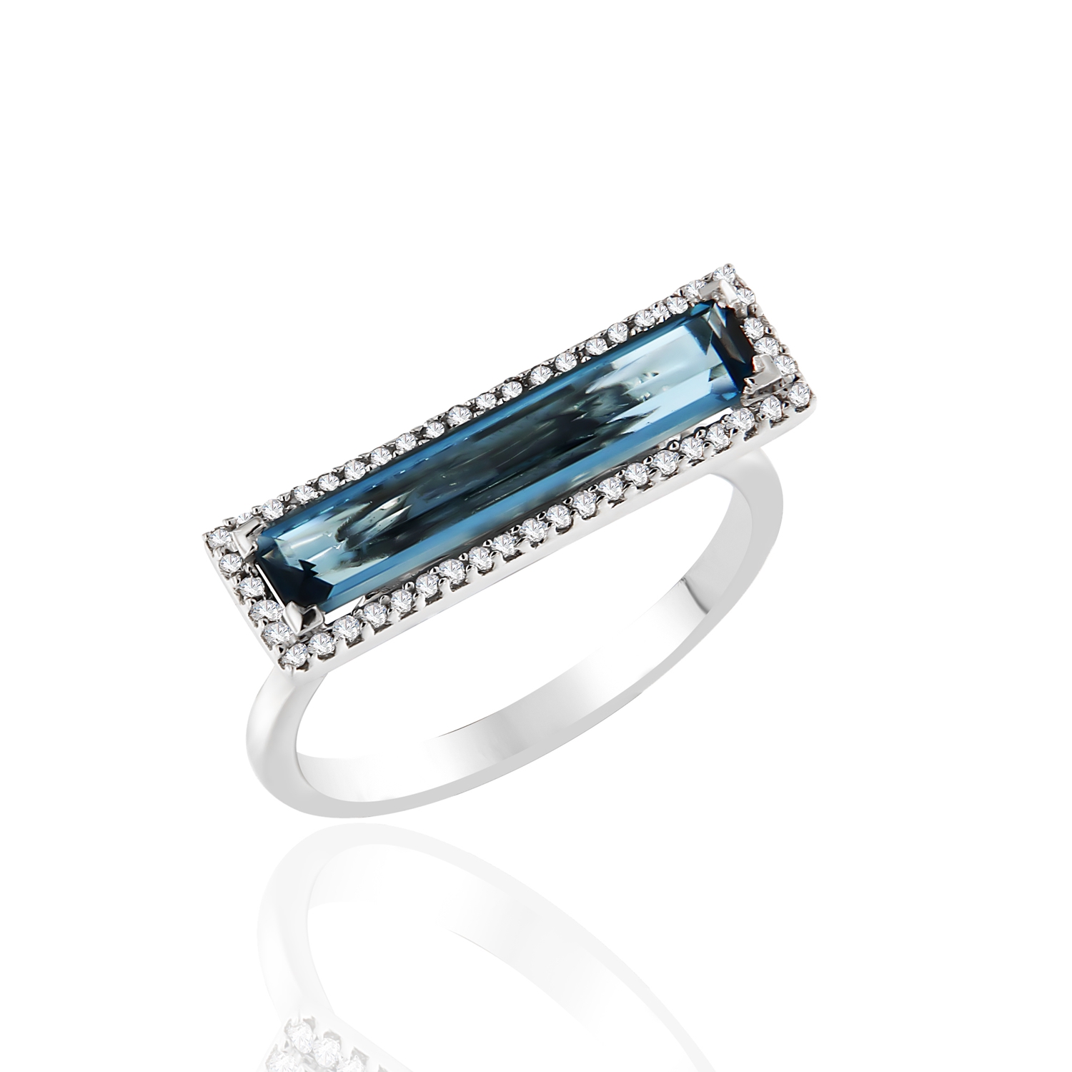 Δακτυλίδι σε λευκόχρυσο 18 καρατίων με London Blue Τοπάζι 2.20ct και λευκά διαμάντια συνολικού βάρους 0.14ct χρώματος G και καθαρότητας VS.
