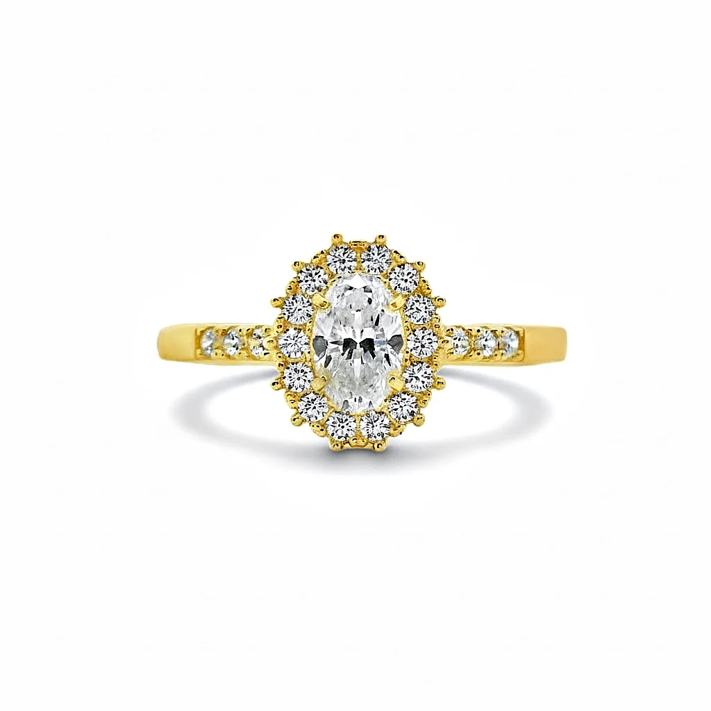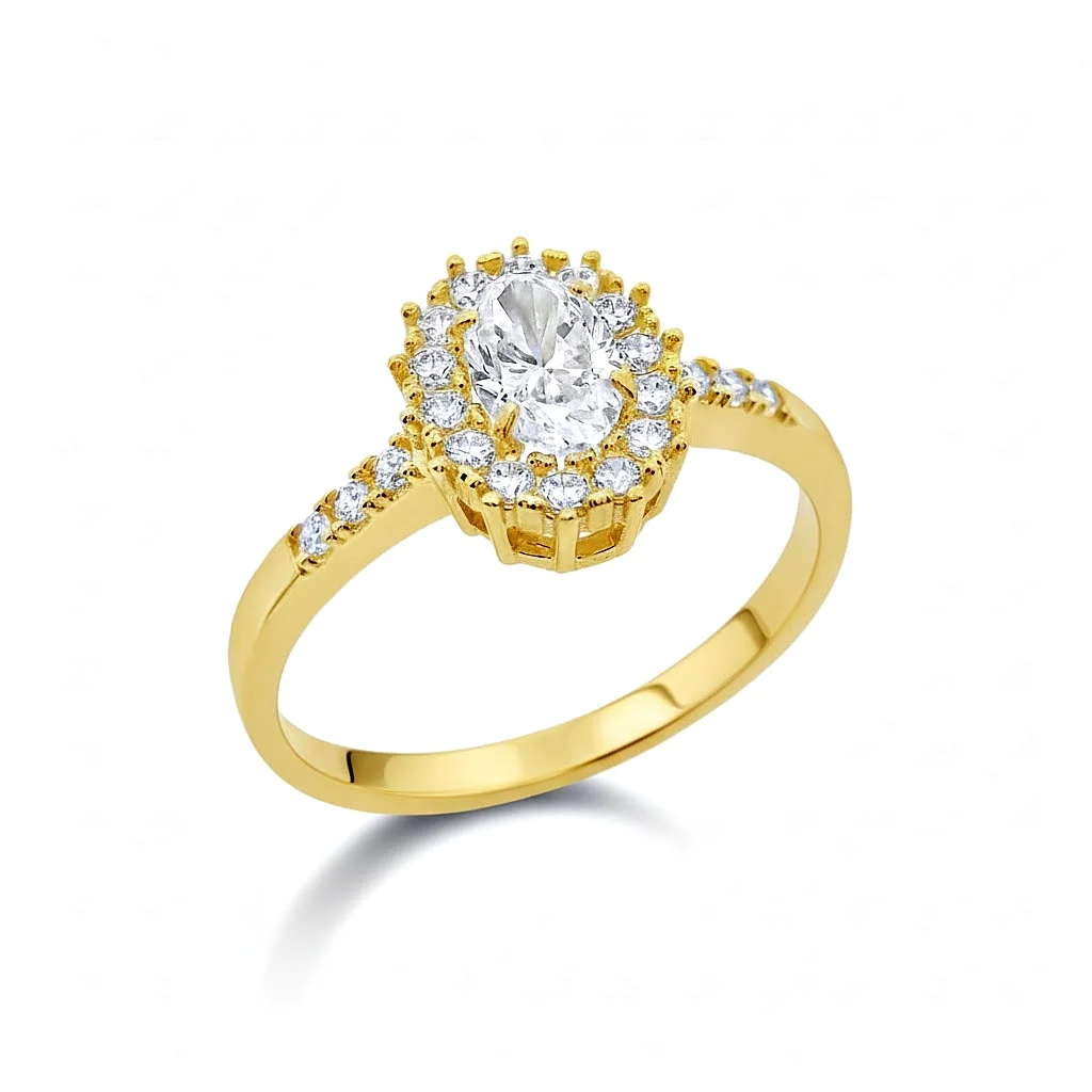 Δακτυλίδι ροζέτα σε χρυσό 14 καρατίων με λευκά ζιργκόν.