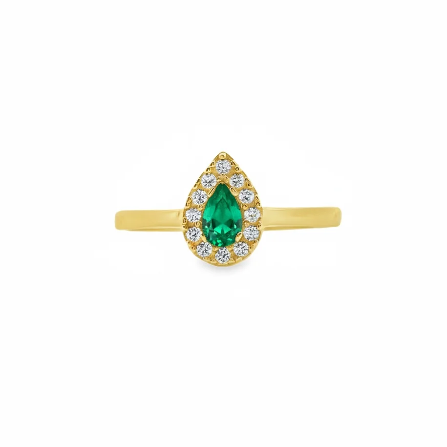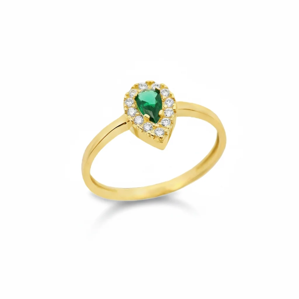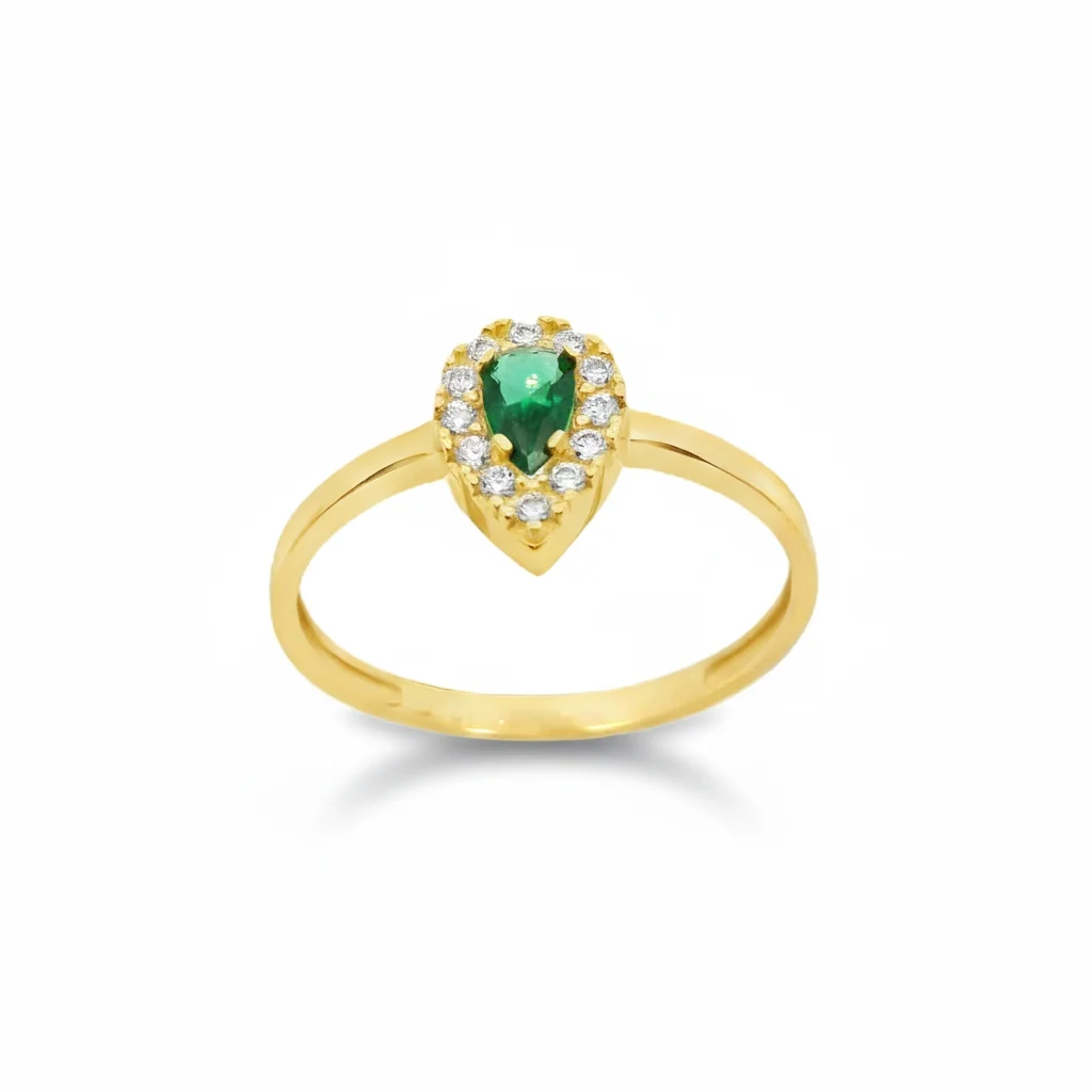 Δακτυλίδι ροζέτα σε χρυσό 14 καρατίων με λευκά και πράσινο ζιργκόν.