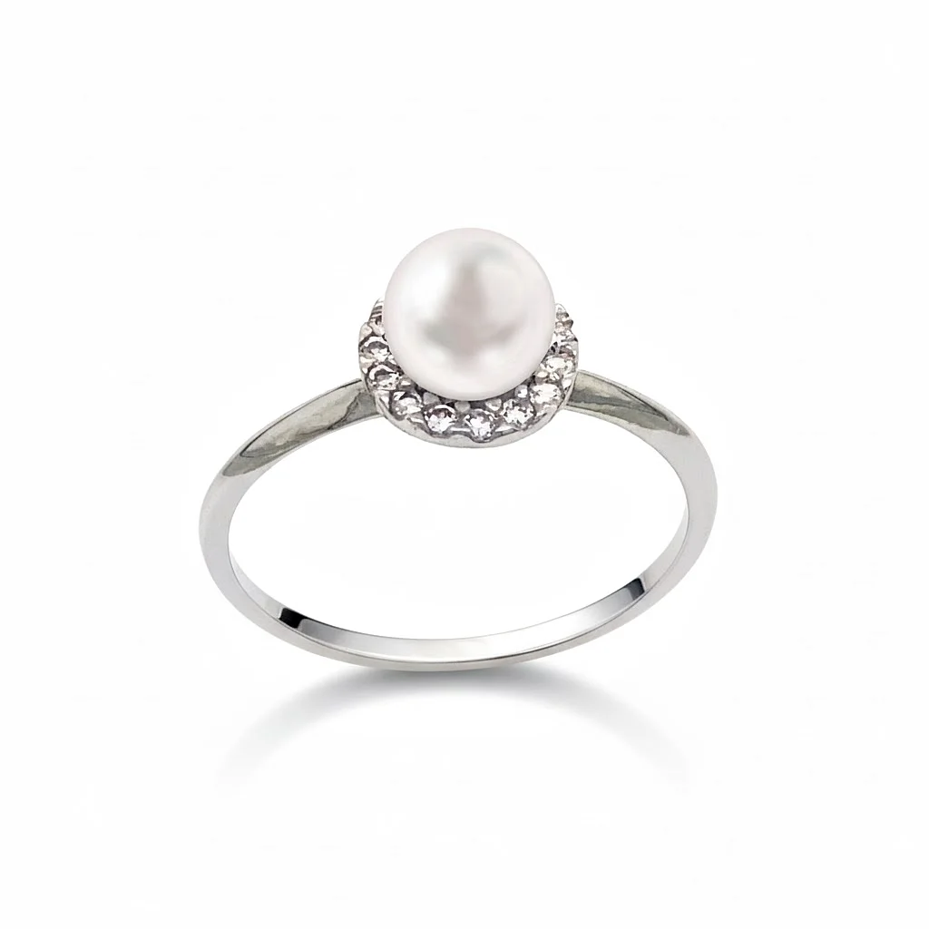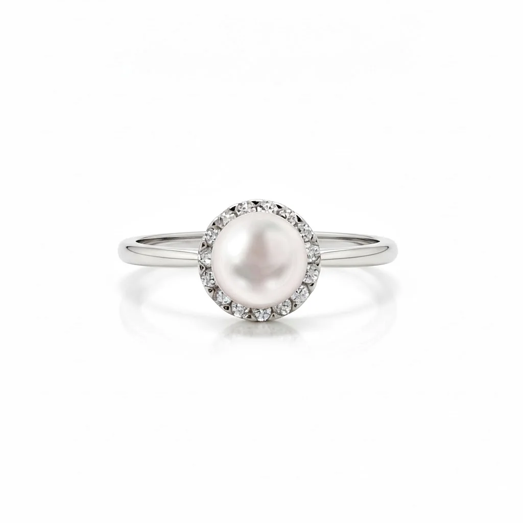 Αυτό το υπέροχο δαχτυλίδι συνδυάζει την κλασική φινέτσα του Μαργαριταριού με τη σύγχρονη λάμψη των ζιργκόν, δημιουργώντας ένα εντυπωσιακό μονόπετρο. Κατασκευασμένο από Λευκόχρυσο 14 Καρατίων. Στο κέντρο δεσπόζει ενα λευκό, στρογγυλό μαργαριτάρι, το οποίο περιβάλλεται από ένα φωτοστέφανο (Halo) με μικρά, λαμπερά λευκά ζιργκόν. Η γάμπα του δαχτυλιδιού είναι λεπτή και γυαλιστερή, αναδεικνύοντας το εντυπωσιακό κεντρικό μοτίφ. Κλασικό, Ρομαντικό, Elegant. Ιδανικό για: Δαχτυλίδι αρραβώνα (ως εναλλακτική), ή για δώρο επετείου/γενεθλίων.