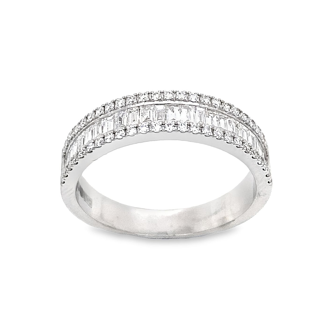 Δακτυλίδι σειρέ λευκόχρυσο 18 καρατίων με διαμάντια κοπής μπαγκέτα συνολικού βάρους 0,40ct και κοπής μπριγιάν συνολικού βάρους 0,21ct χρώματος G και καθαρότητας VS.