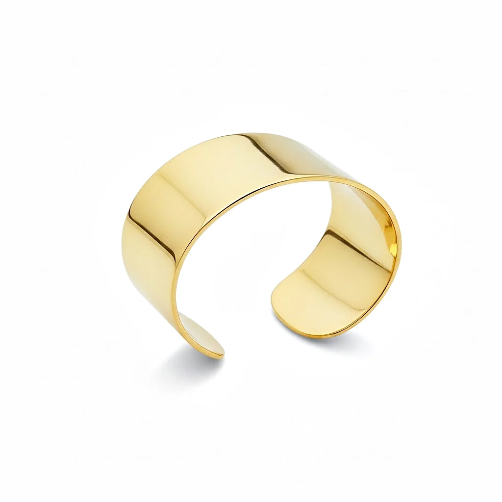 Ένα τολμηρό και κλασικό δαχτυλίδι, ιδανικό για γυναίκες που αγαπούν τα statement κοσμήματα με minimal αισθητική. Είναι κατασκευασμένο από κίτρινο χρυσό 14 καρατίων και ξεχωρίζει για τον καθαρό, λείο σχεδιασμό του. Φαρδύ και ανοιχτό δαχτυλίδι τύπου cuff, με καθαρές, λείες γραμμές και γυαλιστερό φινίρισμα. Το ανοιχτό σχήμα επιτρέπει την εύκολη προσαρμογή στο δάχτυλο. Μπορεί να φορεθεί μόνο του για ένα εντυπωσιακό αποτέλεσμα ή σε συνδυασμό με πιο λεπτά δαχτυλίδια για stacking. Αυτό το κόσμημα είναι ένα διαχρονικό κομμάτι που θα αναβαθμίσει κάθε εμφάνιση, από το καθημερινό ντύσιμο μέχρι το βραδινό look.