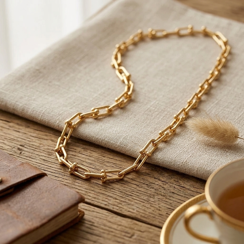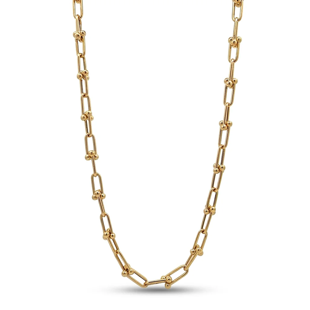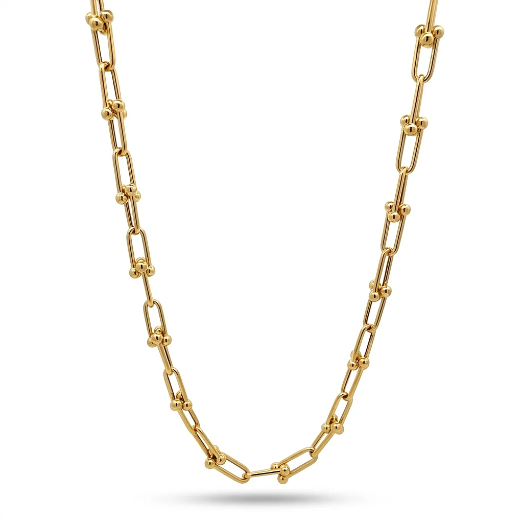 Αυτό το εξαιρετικό κολιέ διαθέτει κομψό και διαχρονικό σχεδιασμό. Τέλεια κατασκευασμένο με χρυσό υψηλής ποιότητας, οι κομψοί κρίκοι του δημιουργούν μια κομψή και μοντέρνα εμφάνιση που προσθέτει μια πινελιά πολυτέλειας σε κάθε ντύσιμο. Είτε φορεθεί μόνο του είτε συνδυαστεί με το αγαπημένο σας κρεμαστό κόσμημα, αυτό το ευέλικτο κομμάτι είναι απαραίτητο για κάθε συλλογή κοσμημάτων.