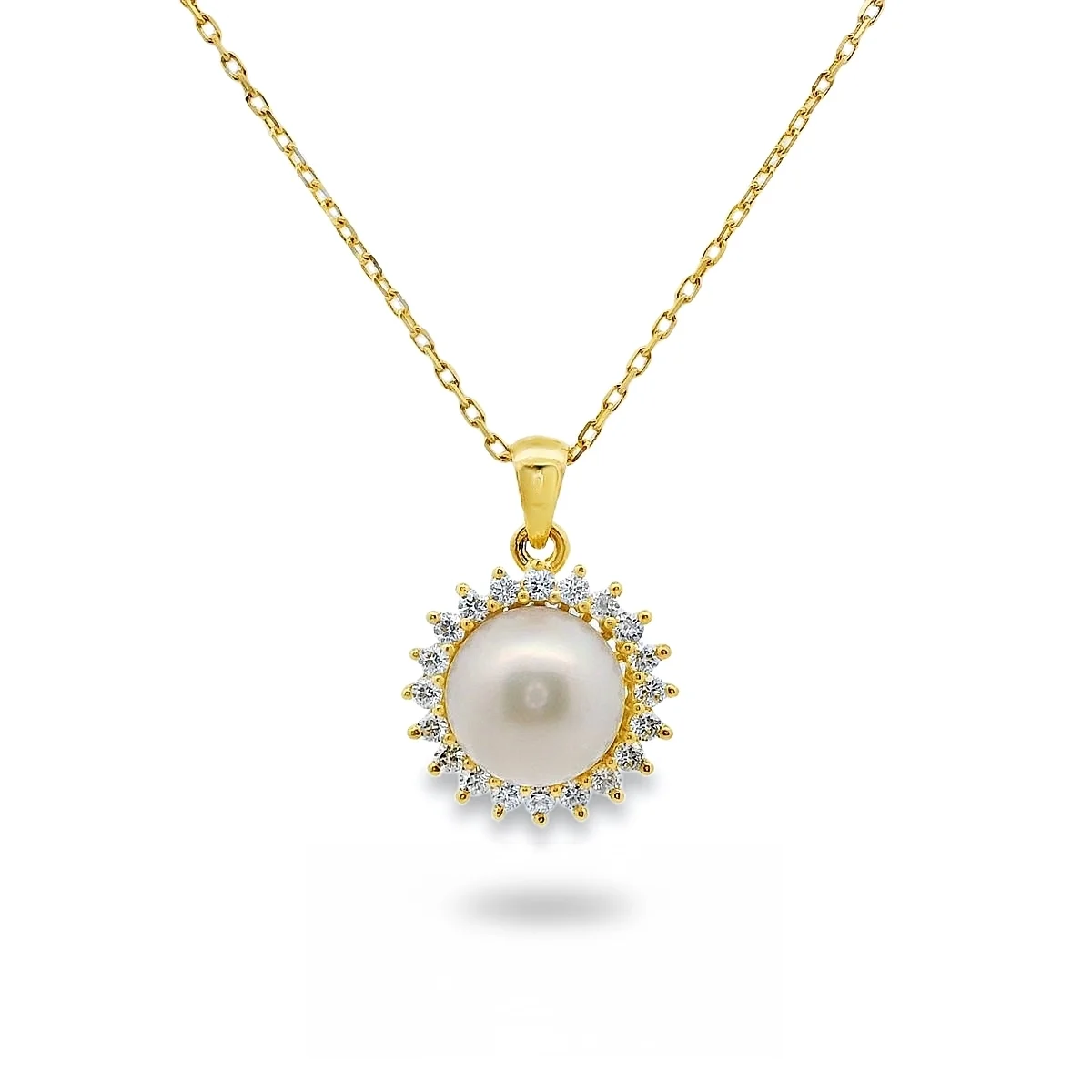 Ένα κολιέ με κλασική, διαχρονική γοητεία, ιδανικό για να προσθέσει φινέτσα σε κάθε εμφάνιση. Το μενταγιόν είναι κατασκευασμένο από κίτρινο χρυσό 18 καρατίων και διαθέτει ένα στρογγυλό, λαμπερό Φυσικό Μαργαριτάρι εξαιρετικής ποιότητας. Το μαργαριτάρι περιβάλλεται από ένα λαμπερό φωτοστέφανο από μικρά, αστραφτερά διαμάντια. Ο συνδυασμός μαργαριταριού, διαμαντιών και κίτρινου χρυσού είναι πάντα στη μόδα. Το φωτοστέφανο ενισχύει τη φωτεινότητα του μαργαριταριού και δίνει την αίσθηση μεγαλύτερου μεγέθους. Ο κίτρινος χρυσός 18K προσφέρει έναν πλούσιο, ζεστό τόνο και μεγάλη αντοχή. Τέλεια επιλογή για γενέθλια, επετείους ή ως νυφικό κόσμημα.