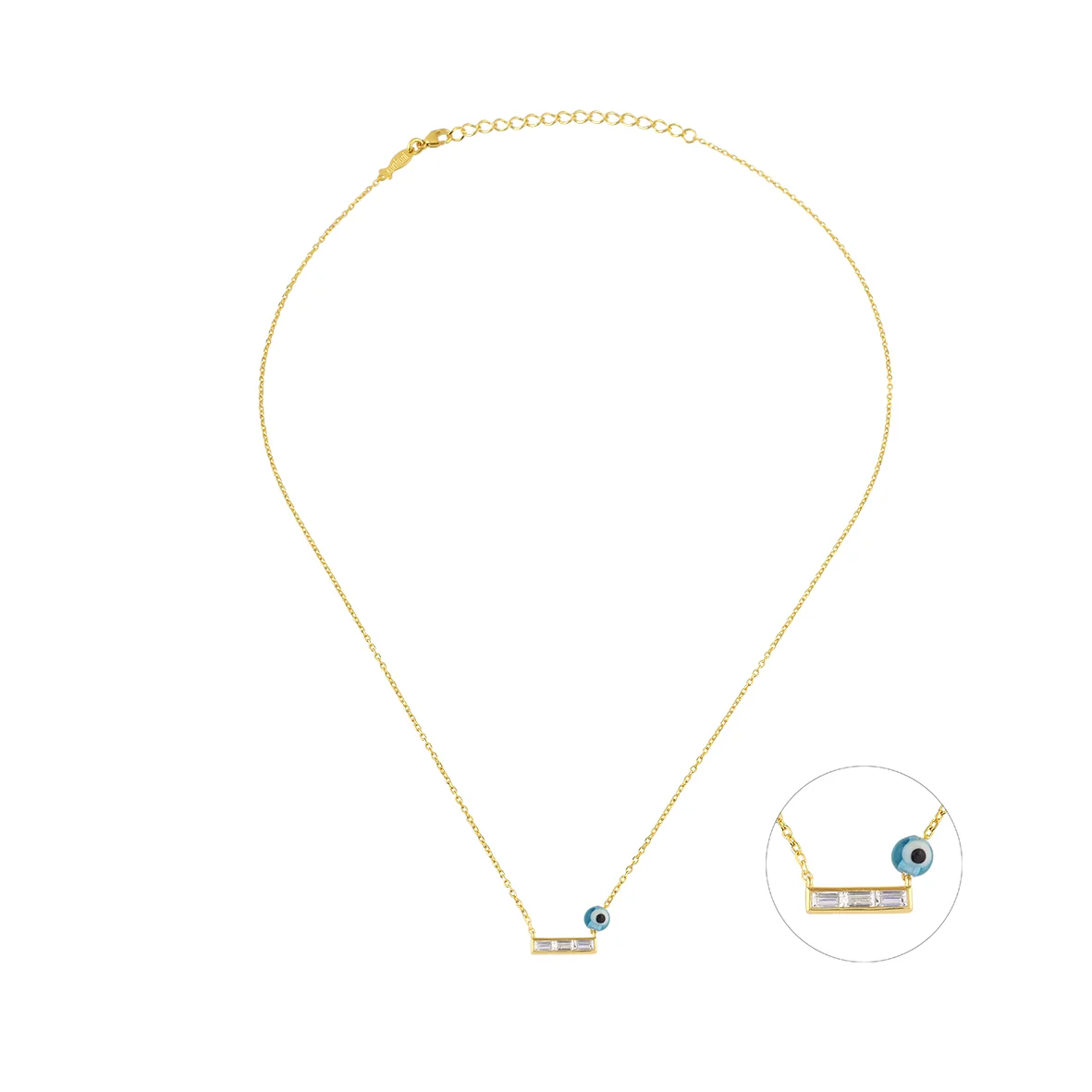 Κολιέ Μπάρα με Ζιργκόν & Ματάκι Kurshuni από ασήμι 925 με επιχρύσωμα 18 καρατίων. Μήκος αλυσίδας 39cm και 3cm προέκταση.