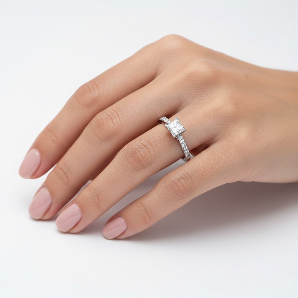 Μονόπετρο δακτυλίδι με διαμάντι σε κοπή Princess