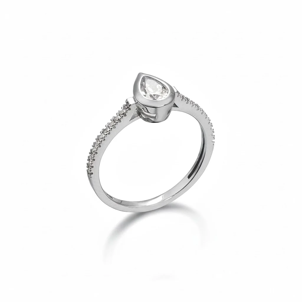 Μονόπετρο δακτυλίδι με ζιργκόν Δάκρυ σε λευκόχρυσο 14 καρατίων.