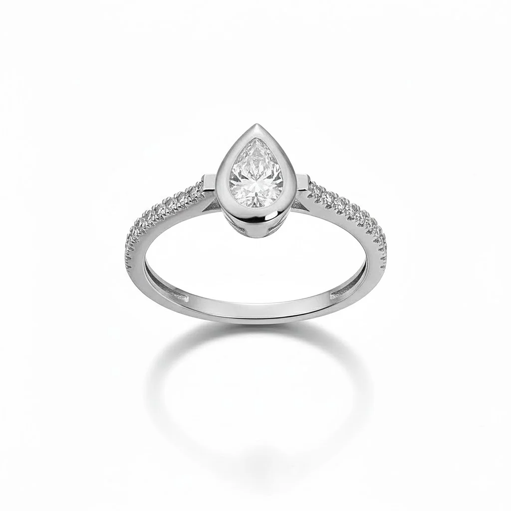 Χαρίστε ένα δαχτυλίδι που συνδυάζει την κλασική αξία του λευκόχρυσου με την πρωτότυπη λάμψη του σχήματος Pear!